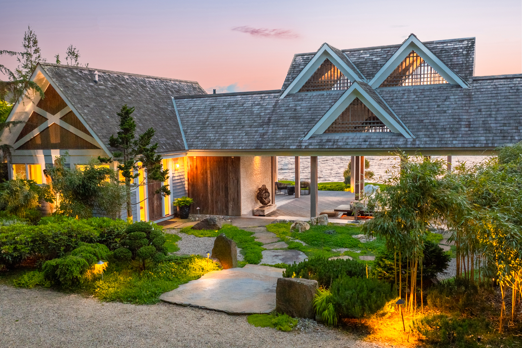 This extraordinary private coastal estate, with its captivating Narragansett Bay views and meticulously landscaped grounds, is an ideal place to gather with family and friends. Poised at the end of a private lane, the 1.5 acre property spans 456 feet of shoreline, connecting four main structures with natural pathways and elegant teak decks. Sweeping bay views grace every room, and lush landscaping surround this private retreat. The “Bungalow", a one-bedroom retreat, boasts soaring ceilings, New England barn beams, and glass doors opening to the lanai with a sunken dining table with sunset views and beach access just steps away. Adjacent, an infinity-edge saltwater pool, waterfall, and jacuzzi offer bay views, anchored by a pool cabana with a stone shower, bathroom and sauna. Opposite the pool, the "Main House" invites gatherings in its expansive living, family and dining rooms with sliding doors and oversized windows. A well-appointed main kitchen, wine room, and galley pantry facilitate entertaining with two ensuite king bedrooms on the second floor. An herb garden separates the "Main House" from the "Cottage", a quaint 2 story abode with gym/studio and ensuite king bedroom. At the far end of the property, the "Tea House" features an enchanting outdoor teak pavilion with soaring ceilings, a sunken dining table, ensuite king bedroom, galley kitchen, and state-of-the-art greenhouse. Raised garden beds and a two-car garage complete this impressive estate.
