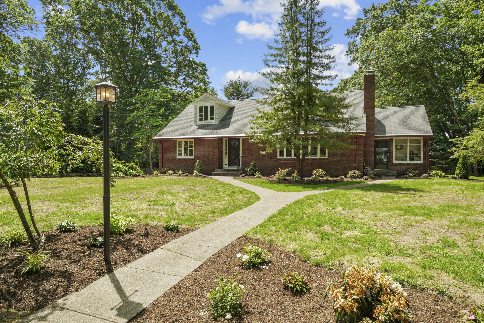 Welcome to a stately, stylish, private residence located on over an acre of land in scenic Barrington! Completely renovated, this 4 bed 2.5 bath Cape Cod home boasts new flooring, new kitchen countertops/appliances/wine fridge, new light fixtures throughout, all new landscaping, reglazing of all windows, updated bathrooms, refinished hardwoods, fresh interior, exterior painting, and more! Quality of craftsmanship is evident throughout, and architectural delights abound, such as the arched doorway, a picture window, beautiful built-ins, and abundant windows. Enjoy morning coffee in the bright sunroom and take in gorgeous views of the expansive backyard from the kitchen and dining room. A large living room with a focal fireplace, grand window, and built-ins is ideal for entertaining! A renovated first-floor full bath is ideal for a primary suite or in-law setup. Upstairs find two generous bedrooms, one of which has three closets and drawers built into the eaves! Incredible charm and a graceful style permeate. The lower level boasts a laundry room, a renovated family room, and a 3-car garage. On over an acre lot, the opportunity to adapt this home to suit your needs is vast. Enjoy a gorgeous yard in a serene setting "dressed " with beautiful stone walls on a quiet, wooded street. Behold nearby Echo Lake, and easy access to the East Bay Bike Path & Providence, all within this elegant and impressive Barrington residence!