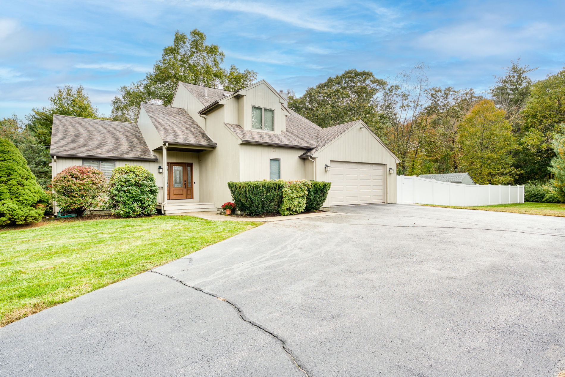 Tucked away on 1.12 verdant acres in the Diamond Hill area of Cumberland, this home blends contemporary design with strong Mission Style influences. Offering just under 2,500 square feet of living space in a private setting with an in-ground swimming pool, the list of updates here — from the roof to the new furnace and hot water heater — is extensive, offering ease of care for years to come. The first floor plan offers open dining and living spaces with abundant natural light, as well as more private office space and a first floor bedroom and bathroom. The kitchen features stainless steel appliances and granite countertops, which are echoed by the granite surrounding the fireplace in the nearby informal sitting room. The indoor space flows easily to the rear deck and the pool and patio beyond, perfect for warm-weather entertaining. The primary bedroom with ensuite bath is located on the second floor, enjoying views of the natural setting. An additional bedroom and bathroom round out this floor. A feeling of tranquility and seclusion make this home a perfect retreat in close proximity to shopping, dining, and easy highway access.
