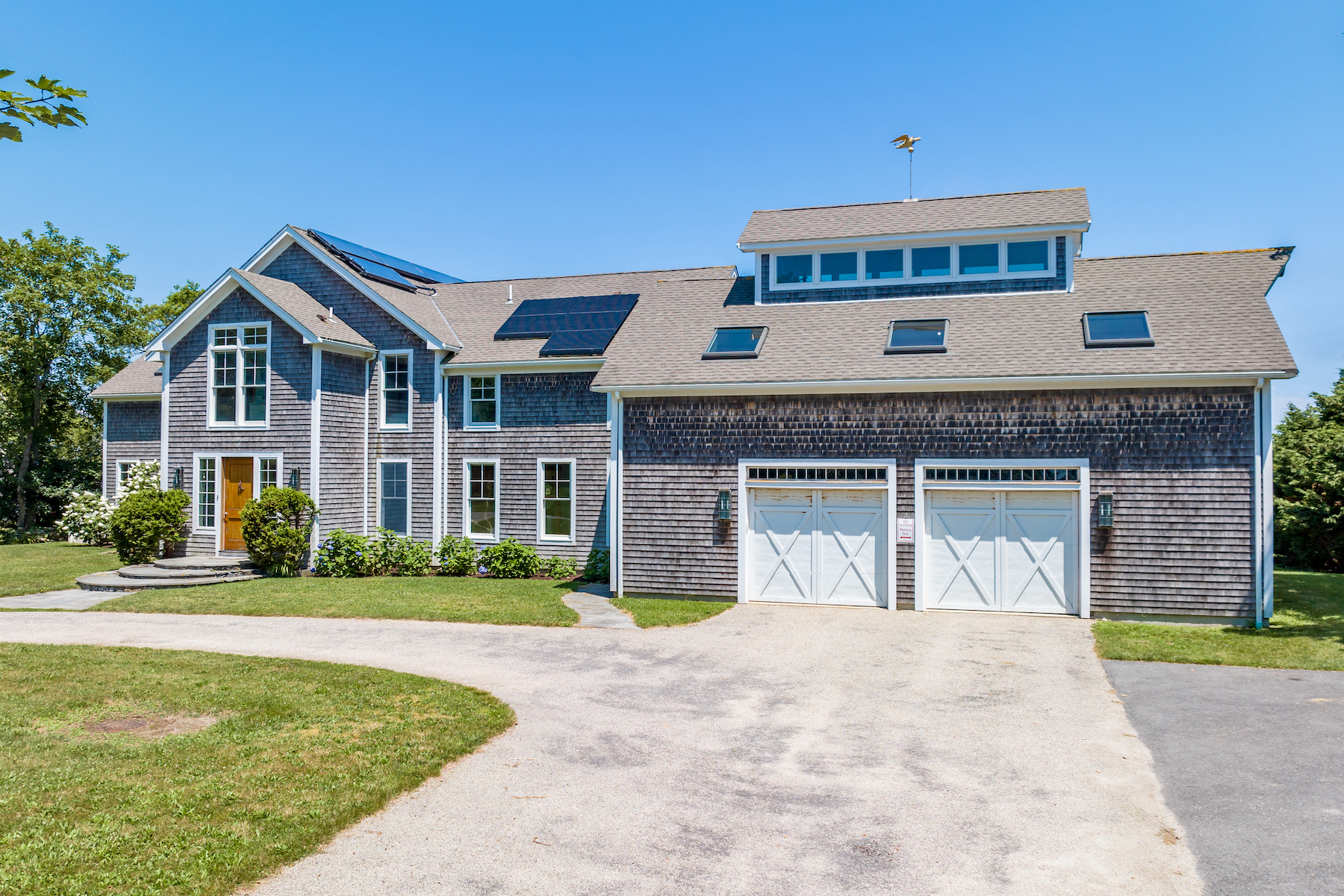 Westport Harbor/Acoaxet. Private country setting. Expansive custom cape set on 2.5 acres combining lawn, meadows, stonewalls, and a variety of plantings. The open and airy floor plan includes a new eat-in chef's kitchen with quartz counters, white custom cabinetry and high-end stainless appliances. A living room with vaulted ceilings, built-in cabinets and a wood-burning fireplace, a formal dining room, half bathroom, and a primary bedroom suite with sitting/office area/walk-in closet and a newly renovated bathroom. Upstairs are two generously sized bedrooms, two renovated bathrooms and a bonus room, perfect for overflow, exercise or craft area. The home has been well cared for and has had many improvements including a new roof. In addition, there is an enclosed sunroom, an attached storage cabana, expansive wood deck, outdoor shower, two car garage and a full unfinished basement. The home is fully air-conditioned, is move in ready making this the perfect year-round or summer retreat.