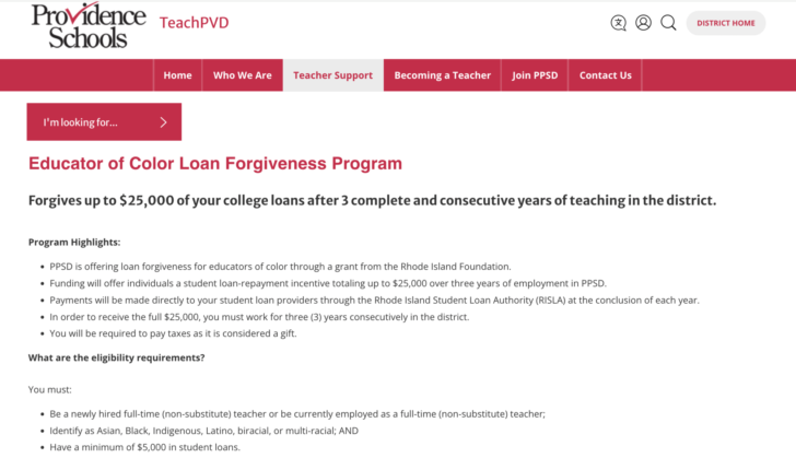 "The evidence obtained during the investigation establishes that Respondent entered into a Memorandum of Understanding regarding the implementation of the Educator of Color Loan Forgiveness Program with the Rhode Island Department of Elementary and Secondary Education and a third-party foundation on May 4, 2021. The evidence shows that Respondent advertised the Educator of Color Loan Forgiveness Program on job postings and on its website to recruit and hire non-White teachers. The evidence reveals that Respondent’s Educator of Color Loan Forgiveness Program pays for student loans up to $25,000 for a period of three years solely for 'new teachers of color,'" wrote the EEOC.