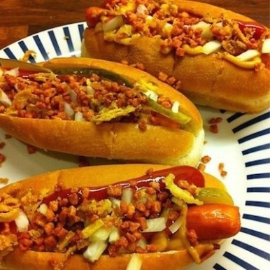 The quote from the James Beard Foundation says it all: "Olneyville New York System, despite its name, serves food that is distinctive to Rhode Island. Slathered with mustard, topped with meat sauce, sprinkled with celery salt and onions, and served in a steamed bun, the hot wiener is signature as are the salt and vinegar French fries. The preferred drink is coffee milk, made in Rhode Island by flavoring milk with a sweetened coffee concentrate called coffee syrup." Enough said!