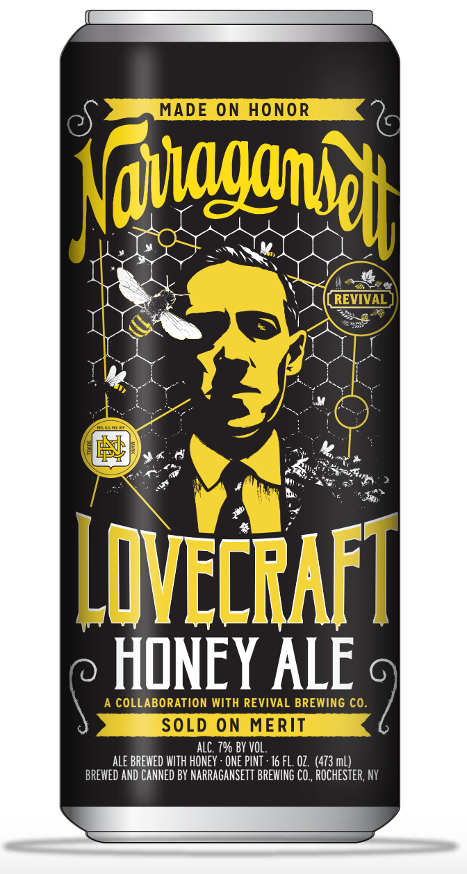 Narragansett Beer announced on Monday the release of Lovecraft Honey Ale to celebrate the life, works and heritage of Providence’s horror fiction writer, H.P. Lovecraft. This first release in Narragansett’s Lovecraft Series is crafted in collaboration with Revival Brewing Company.