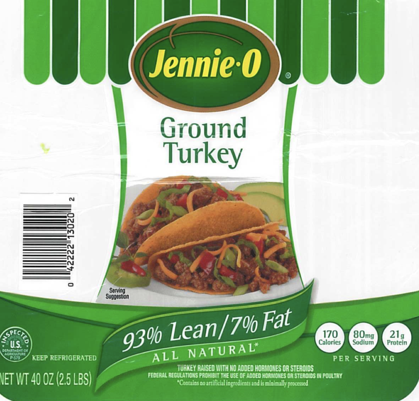 GET THE LATEST BREAKING NEWS HERE -- SIGN UP FOR GOLOCAL FREE DAILY EBLAST- 3-lb. packages of “Jennie-O GROUND TURKEY 93% LEAN | 7% FAT” with “Use or freeze by” dates of 11/12/18 and 11/13/18 on the side of the trays.