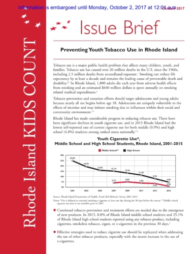 RI Kids Count Releases Report on Youth Tobacco Use in RI