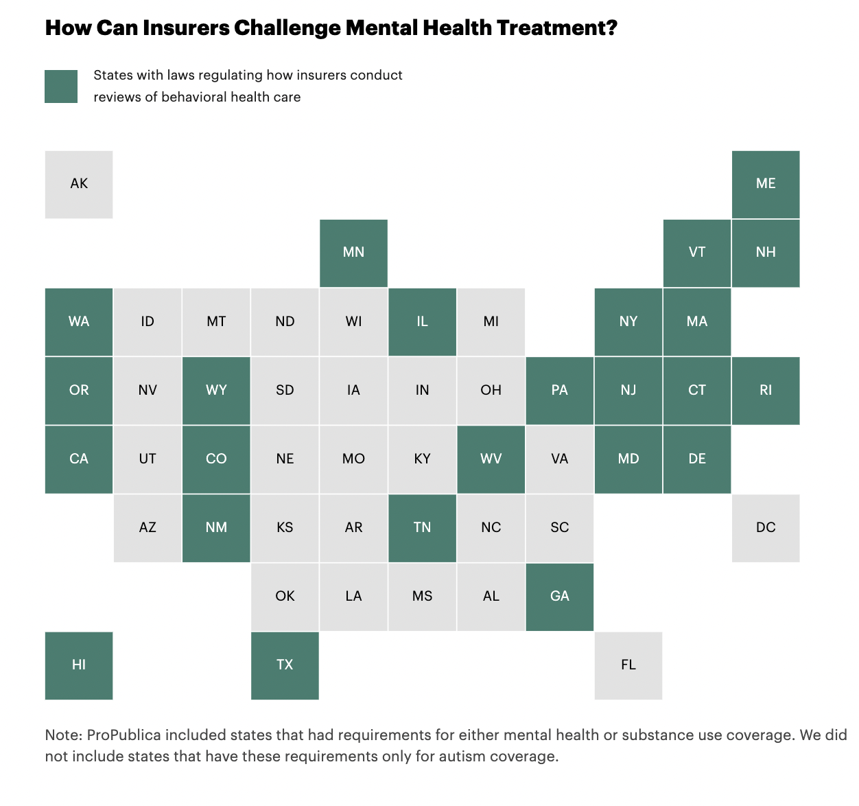 In recent years, at least 24 states have passed legislation to try to regulate how insurers conduct reviews of behavioral health care.