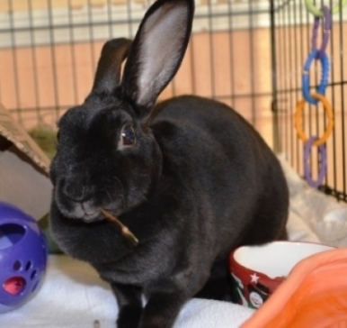 Hi, my name is Whiskey! I am a Rex Rabbit. I'm chill and affectionate with a coat velvety to the touch. I adore being pet, but also love my alone time. I enjoy stretching out and taking bunny naps, as well as tossing around plastic toys in my cage! A home with mature children would suit me best. If your looking for a swell new friend, I'm your guy for sure.