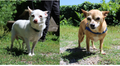 Our names are Daffodil (tan) and Daisy (white). We are a bonded pair of ladies who are looking for a home to live out our golden years in. We are 10 years old chihuahua mixes. We do bark at strangers but warm up with a little patience and time. Our potential adopters would need to work with us on managing our reactivity to strangers. We are social with calm dogs and could live with a cat. Teens or adults only would be best for us. Come meet us today!