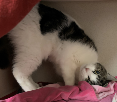 I'm Mimi! I'm a 1-year-old female cat. I have very little experience interacting with people so I would like a quiet home where I can have my space to snooze and wander. In terms of my personality, I'm a private investigator. I'm working undercover to keep an eye on you and your household. You may not even know you're under surveillance. I can vanish into thin air if anyone or anything interferes with my investigation. If you need a cat who knows how to stay out of trouble and will always keep your secrets, I just might take your case.