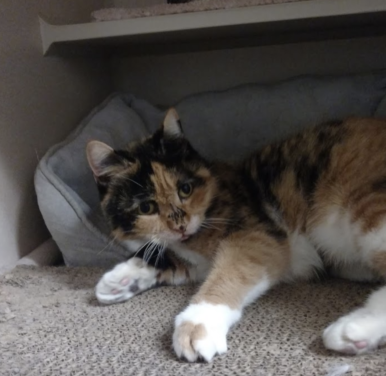 My name is Catica and I am a 6 year old female. I'm TOTALLY into playing, like all day, every day. I like to snack too (please put my food in a food puzzle or a food toy to help give me extra enrichment). I enjoy having my familiar people around, but am happiest when they are holding a toy for me to play with. If you're into cats with lots of energy and definitely not a couch potato, ask about meeting me! My feline-ality is "Executive". I have to say, I'm a busy cat. First, I've got to check out what's happening out the window. Next, I'll see if any closets or cupboards need looking into. And then there are my naps ? can't be late for those. I can fit a little socializing into my schedule. Shall we plan on breakfast and dinner? I hope you like kibbles.