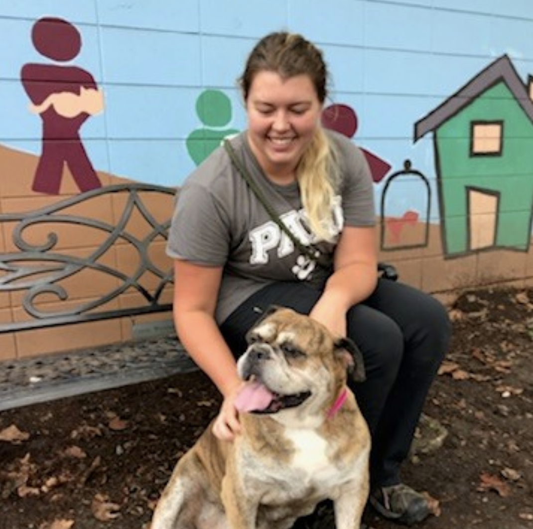 My name is Grandma. I am a 7 year old short, squat Bulldog mix. I was found as a stray so staff have limited information about me. But I am sweet as pie and would be a great companion for a variety of families. I am definitely more of the chill on the couch dog than running marathons. I could live with kids, other calm dogs, and potentially a cat with a slow introduction. Come meet me today!