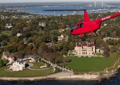 Bird’s Eye View Helicopters based at 11 Airport Access Road, Middletown, RI 02842, offers an aerial ride around Newport passing over sites such as the Newport mansions. The basic trip is priced at $150.00 for two people.