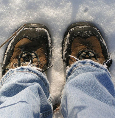 Wearing snow boots
