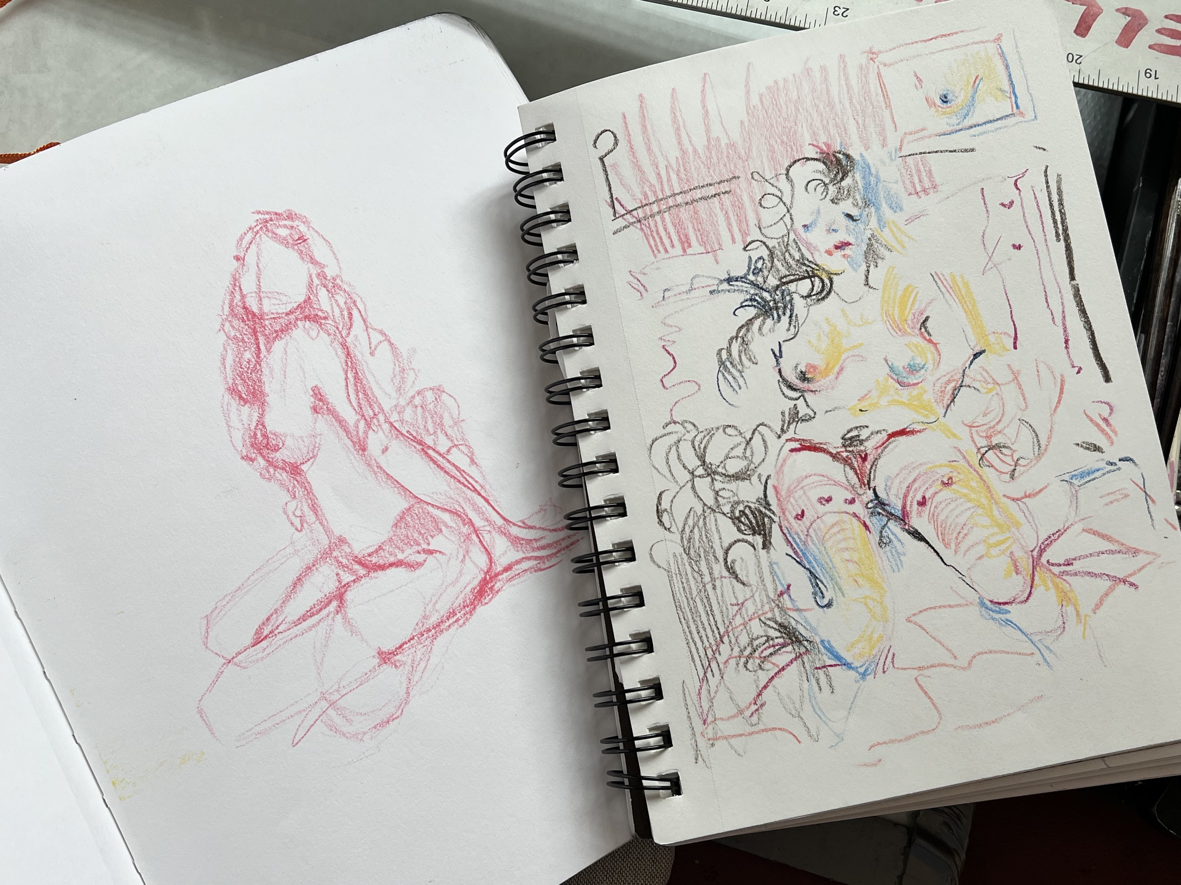 Nude and seminude figures are the motif of choice in Puccio’s current work. Her paintings are intense and direct. They are challenging to traditional expectations around naked women in art and expose underlying truths that are highly personal. Stylistically, Puccio’s work is reminiscent of contemporary greats like Lisa Yuskavage or Jenny Saville, while the subtleties of her art belong to her alone. She frequently acts as the model for her own work, adding a layer of intense emotional vulnerability and connection to the art she is creating.