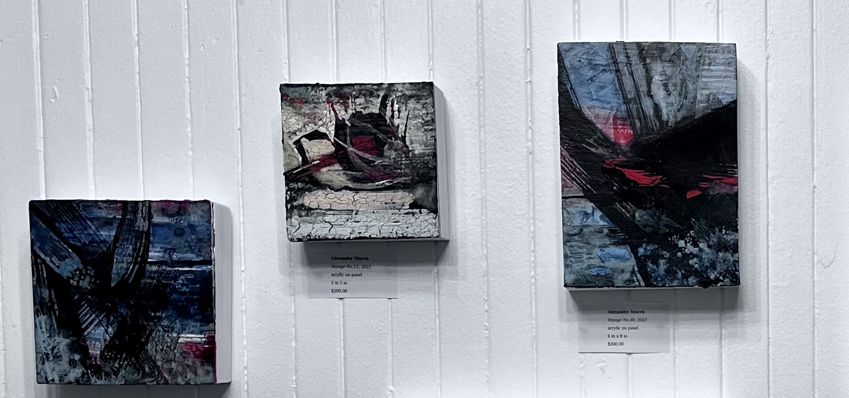 Looking forward, Morris plans to stay busy. Laying out forthcoming artistic endeavors, he says, “Next for me is I have two pieces on auction at Attleboro Arts Museum. They are having a live auction event on November 5th at 6:30 pm, 86 Park Street in Attleboro. My Open Studio Event is ongoing on my website www.alexandermorrisart.com. I’m also looking forward to participating in the Holiday Group Show at Monument Square Arts.” Morris also encourages individuals who are interested in his work to follow him on Instagram at @_wolfbird for regular updates from his active studio.