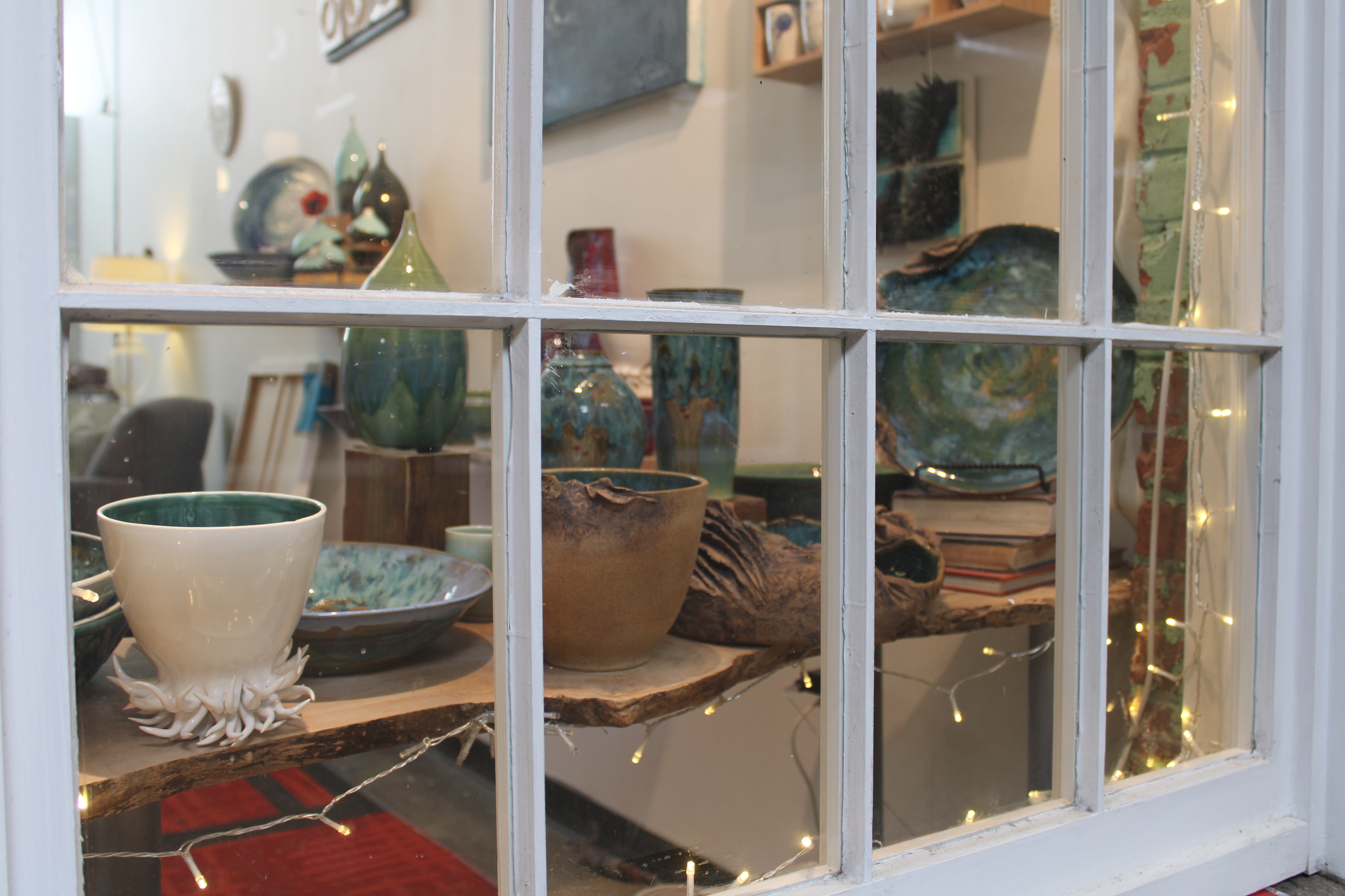 Since 2001, she has operated her successful ceramics practice, making items as various as mugs, platters, and yarn bowls, all imbued with a beautiful sense of form and color that is all her own. In her studio, one can find an array of artful ceramics that were thrown by hand on a wheel in the center of the space and fired in Minda’s electric kiln in the back.
