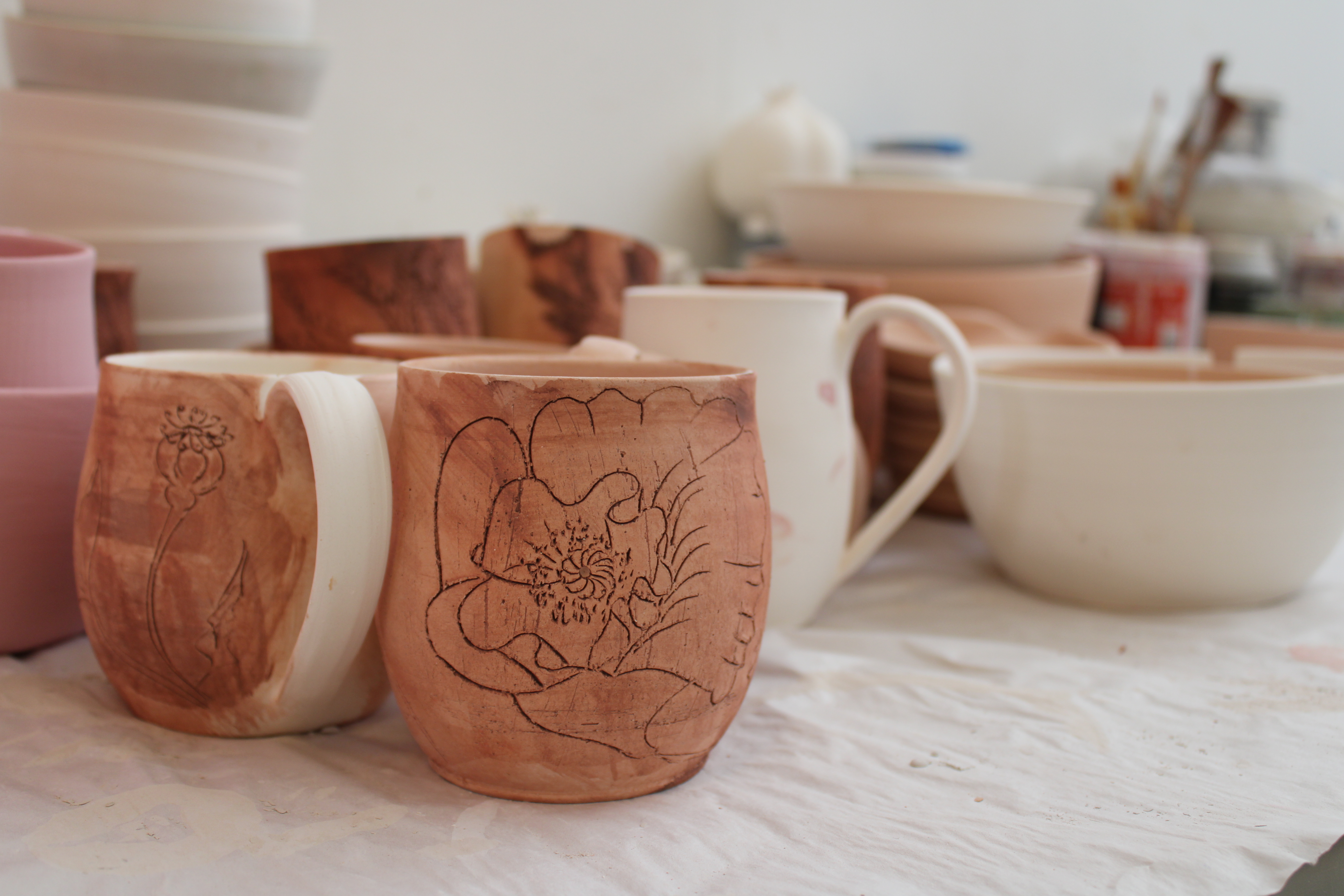 Looking forward, Minda has many ceramics orders to fulfill and plenty of other projects on her docket. Speaking of what she’s most excited about, she says, “I always feel excited about creating and sharing. Adding new designs to my collection always keeps my creative mind fresh and excited. I recently started to paint and hope to be able to display my sculptural ceramics and my paintings in the galleries in the upcoming year.”