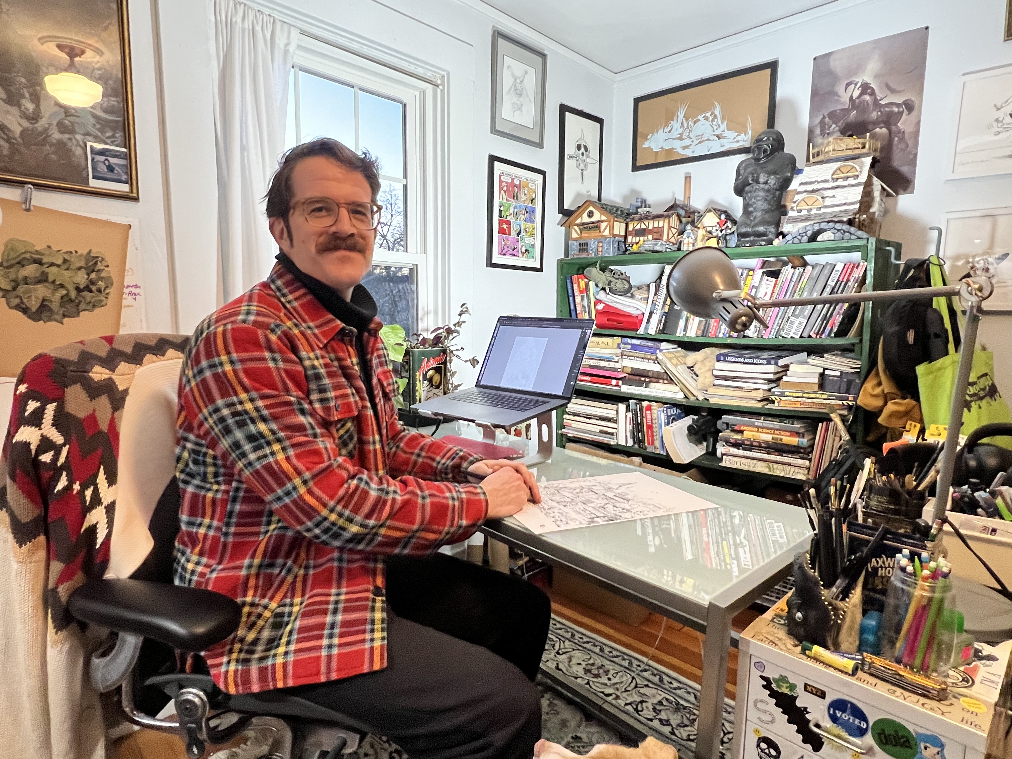 His art has been featured in exhibitions at the historic Society of Illustrators, where his early role model Rockwell was once a member. Additionally, he has shown at the Newark Museum of Art as well as in commercial galleries in Seattle, San Francisco, and New York. He has also amassed a sizable online fanbase for his creative practice and boasts nearly 30,000 Instagram followers.