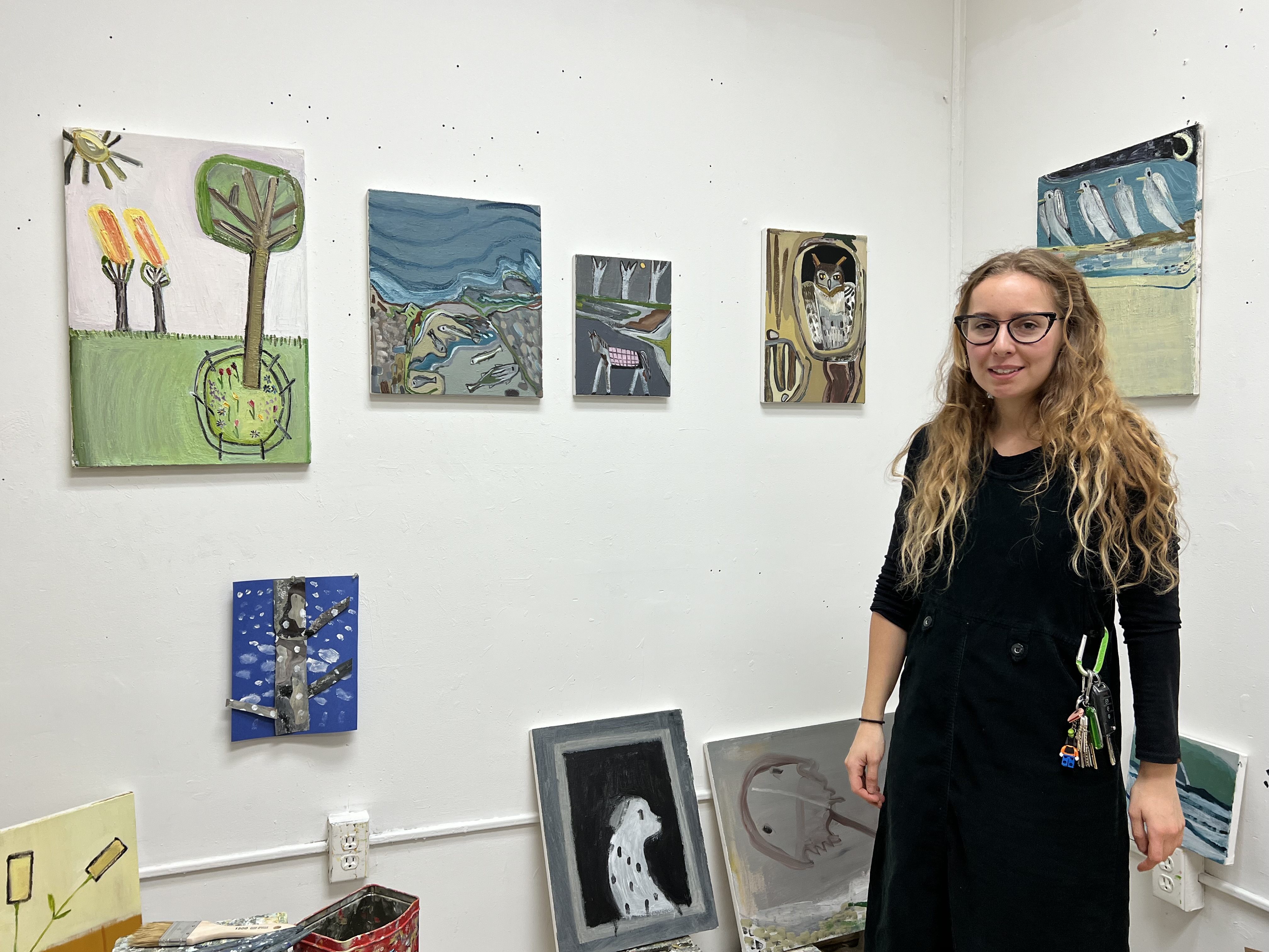 DeAngelis is originally from Barrington and has been working out of a studio in an historic mill at 30 Cutler Street in Warren since shortly after she graduated from Rhode Island College. At RIC, Jenna earned a BFA in Painting and also took an interest in art history. She was also an honors student and the recipient of a DeStefano Undergraduate Research Scholarship, which she used to explore process. Today she tends towards paintings in oil alongside some acrylics that she executes on canvases she stretches herself.