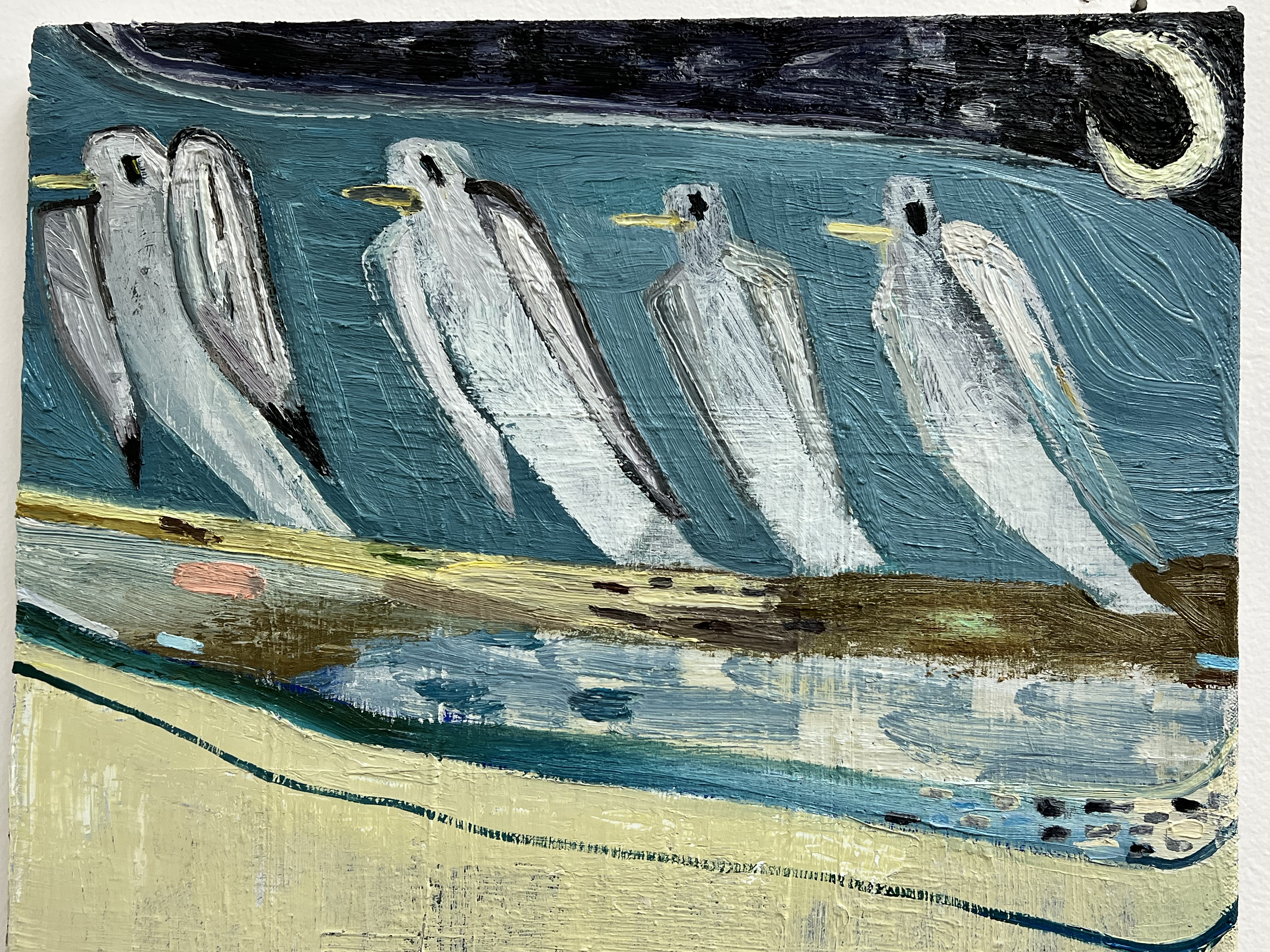 Asked about what it means to her to be an artist in the Ocean State, DeAngelis says, “The influence growing up in Rhode Island has on my work is something I appreciate more and more. As the seasons change, the shifting landscape tends to find its way into my paintings. I am very grateful to live by the ocean and to be influenced by its vastness and mystery.”