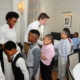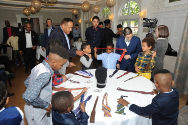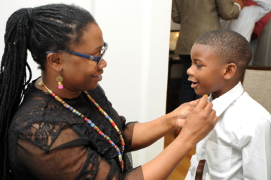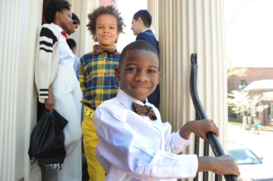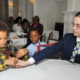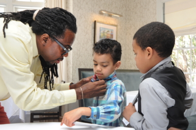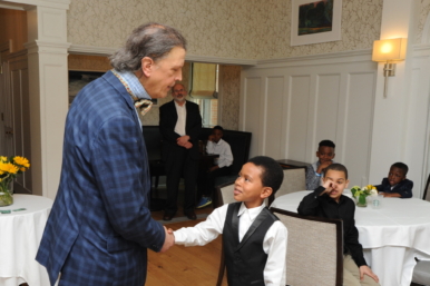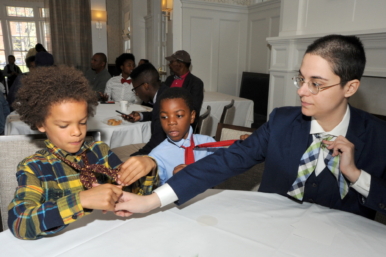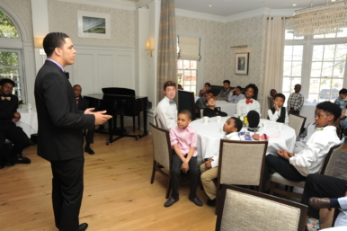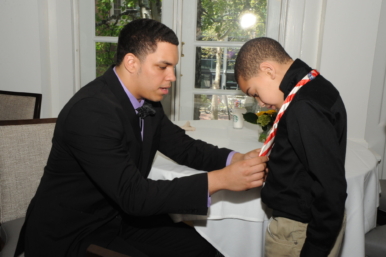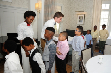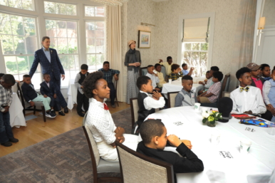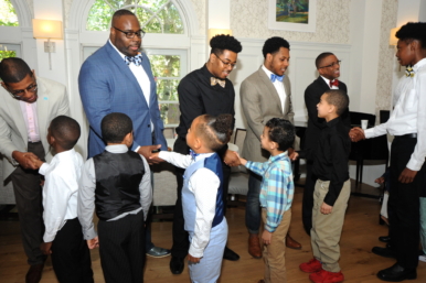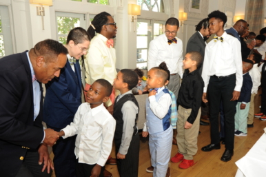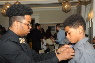More than a dozen mentors assisted the boys in learning skills like shaking hands, introducing themselves, and tying a bow tie.