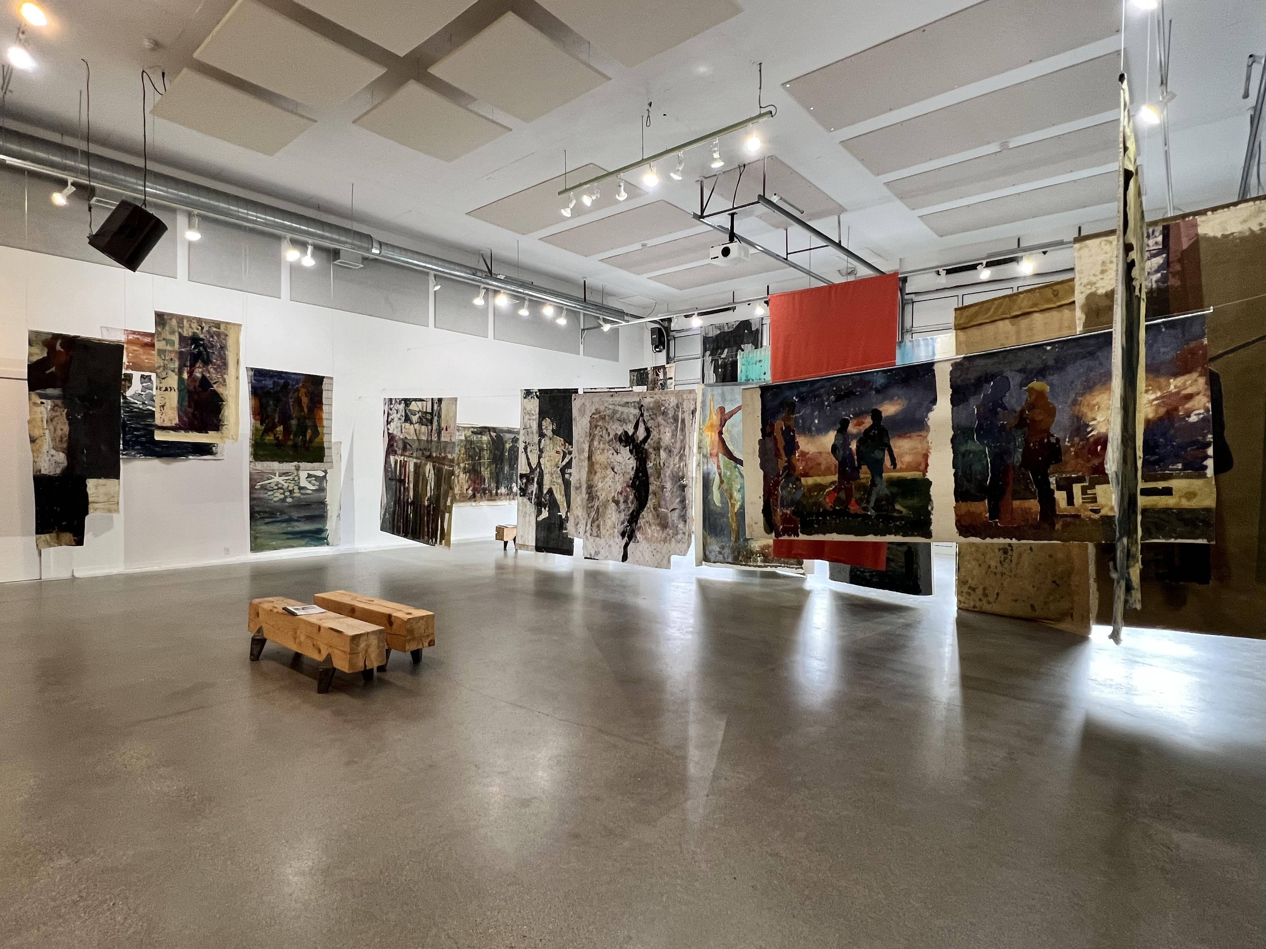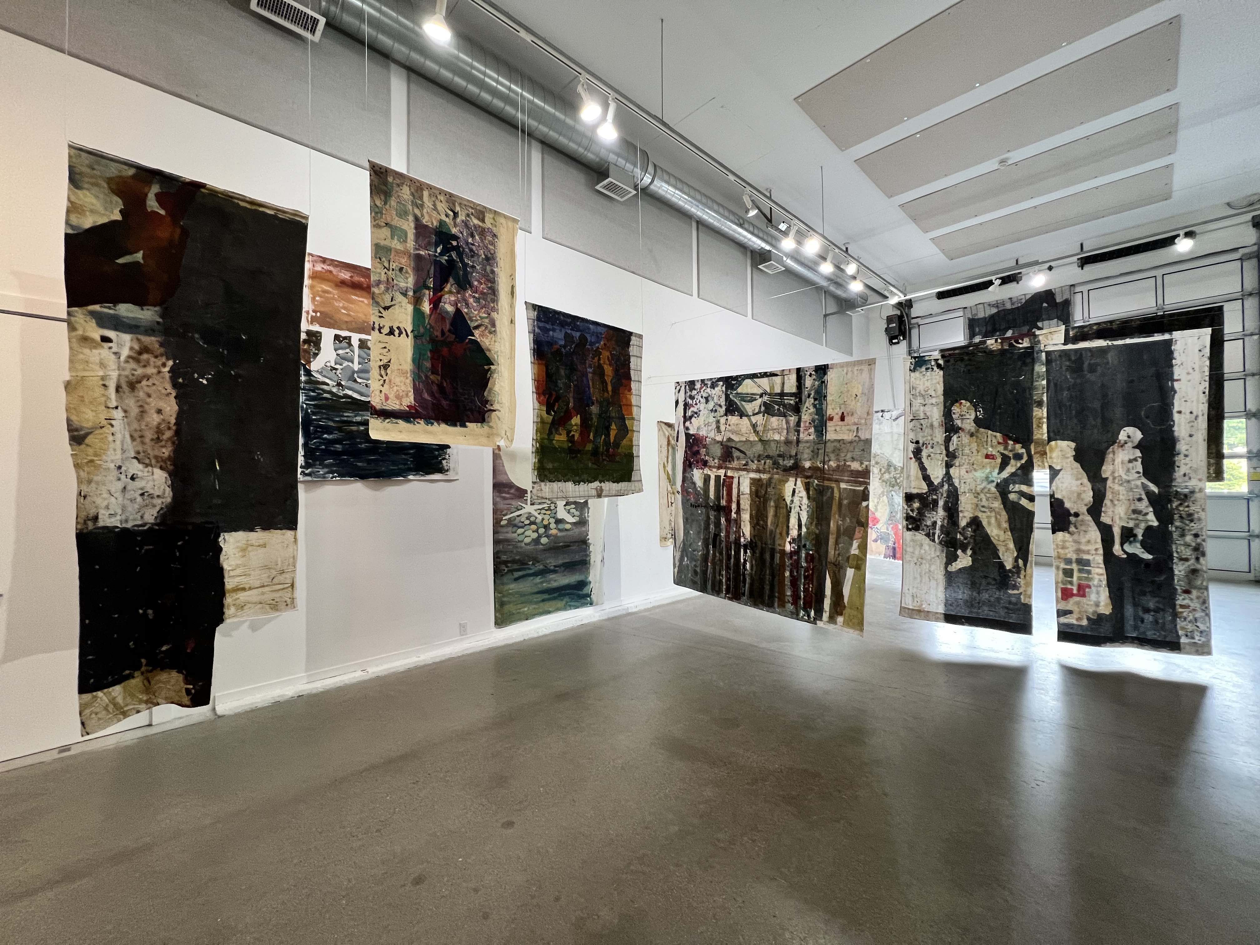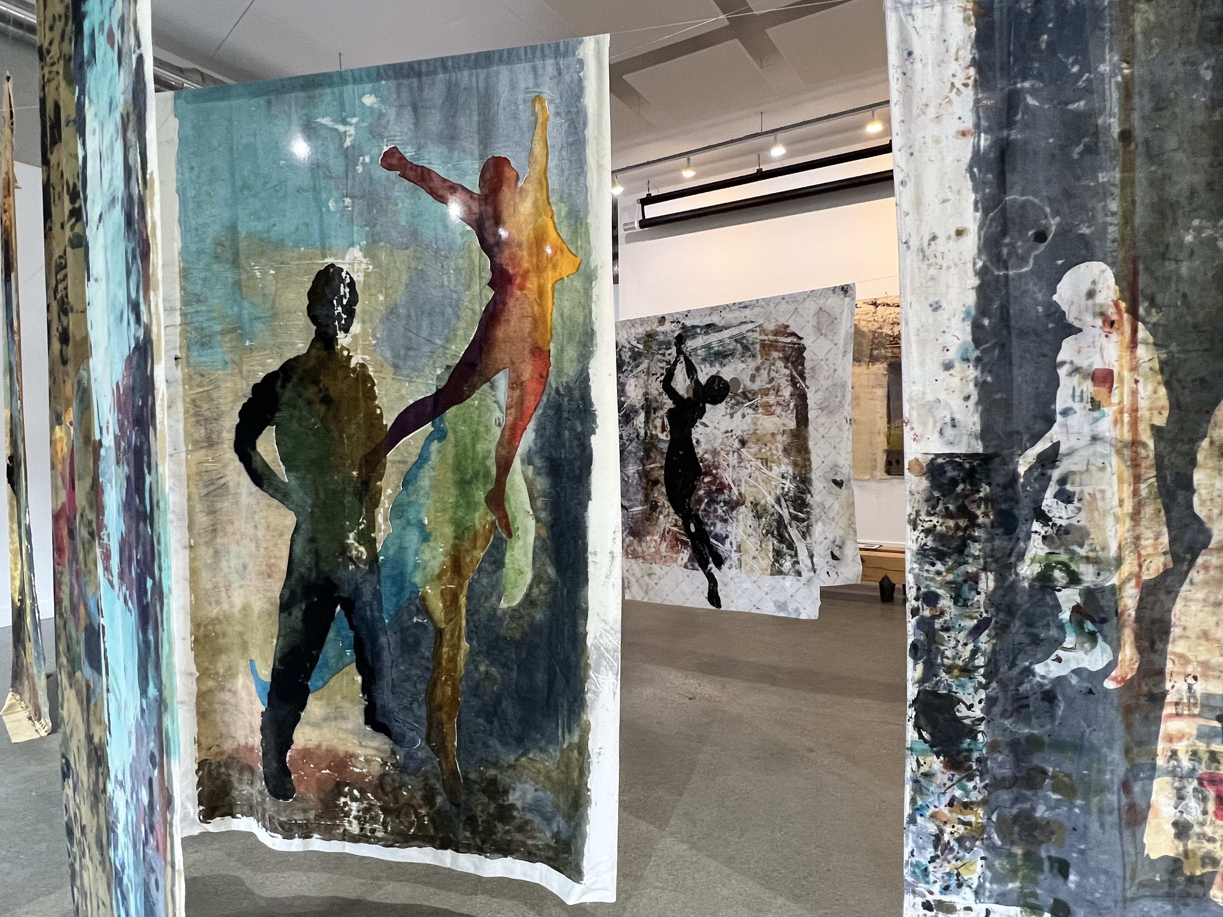 Titled “Dropcloths: Tales of a Process,” Baronas’ show features an array of textiles created between 1983 and 2023. The show charts the productive decades-long career of a singular artist and shows off the remarkable effect of works created on and with cloth. Primarily focused on figures and work, the towering pieces in the exhibition have the effect of tapestries that aim to capture and share histories. An immersive installation brings viewers close to Baronas’ art, inviting a walk through artistic creation.