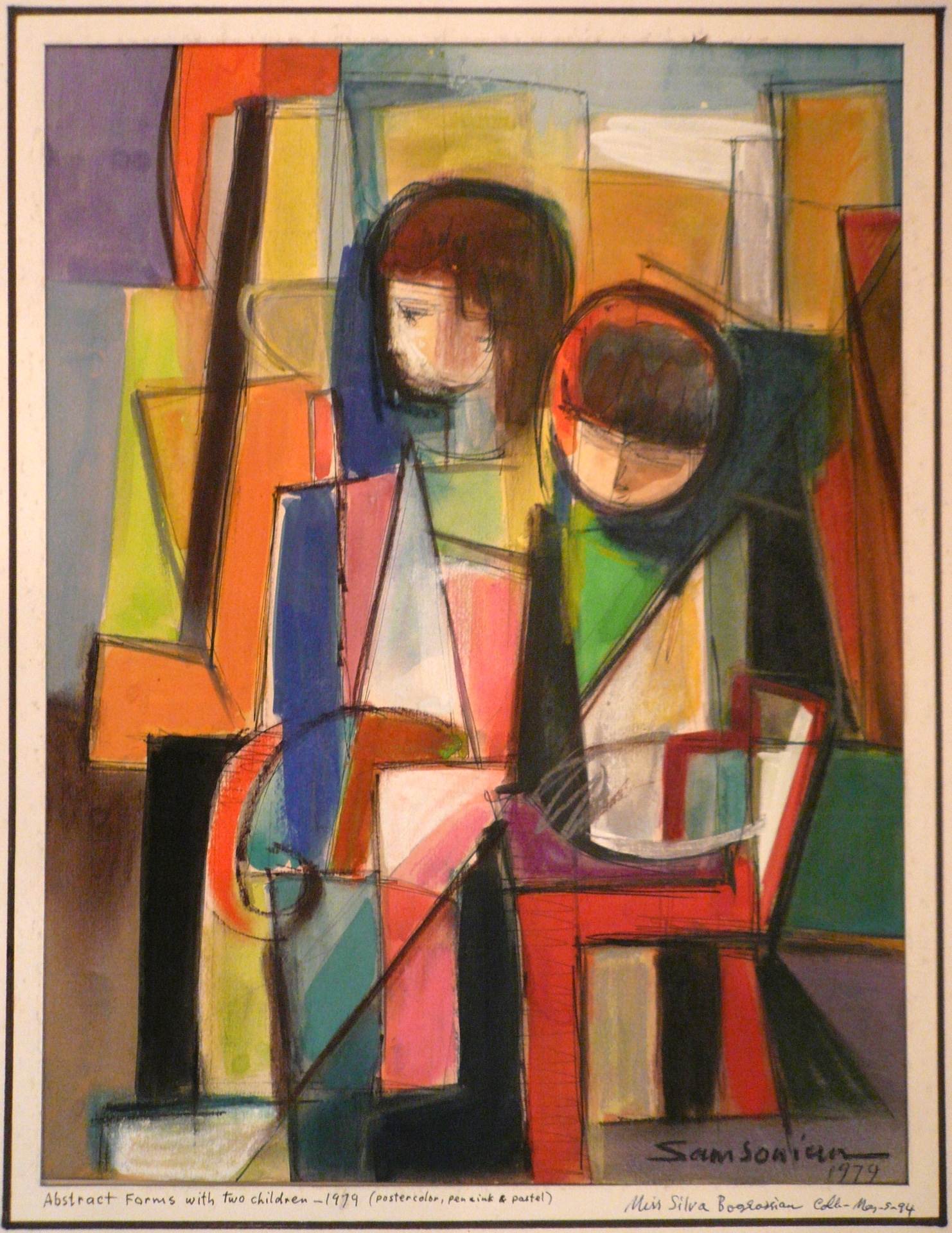Simon Samsonian (1915-2003) is April’s featured artist. A giant among Armenian artists, orphaned by the 1915 deportation and massacre of the Armenians in Turkey, he spent his childhood in orphanages in Greece and Egypt. Having also lost his family name, he was given the name Samsonian by the orphanage, having been brought there from Samsoun. After an established career in the receptive art environment of Cairo, Egypt, and having traveled to museums in Europe, Samsonian settled in New York in 1968. The France Amerique labeled his work “symbolic cubism” (1972). Bold lines, rich colors, flat expanses, and planes depict landscapes, cityscapes, still lifes and portraits in a distinctive contemporary style. Samsonian’s works are in museums in the U.S., Armenia, Egypt, France, and Austria.