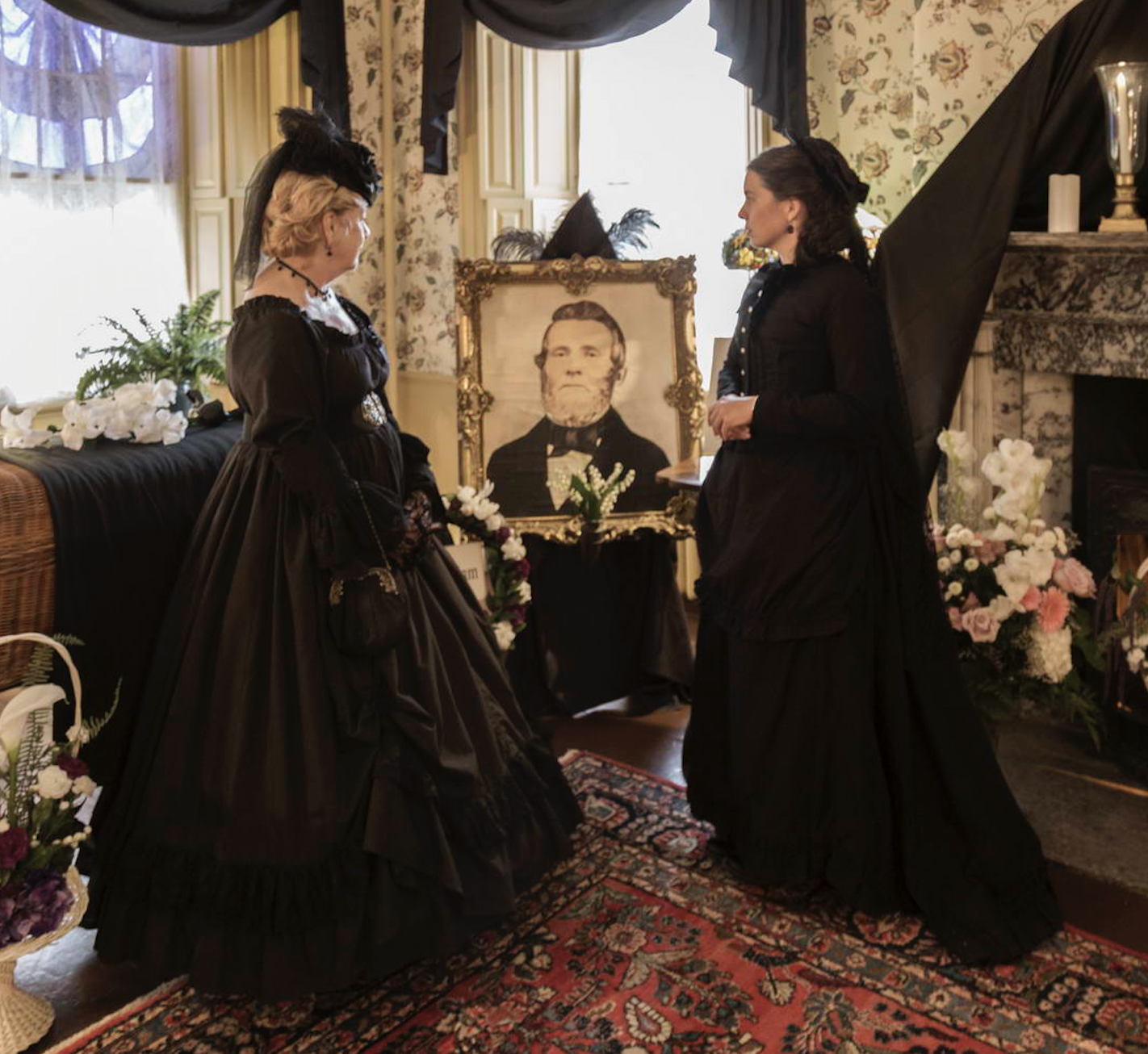 The solemn occasion is a depiction of a household in mourning, in this case, for the death of Hearthside owner Simon E. Thornton, who died there in 1873.