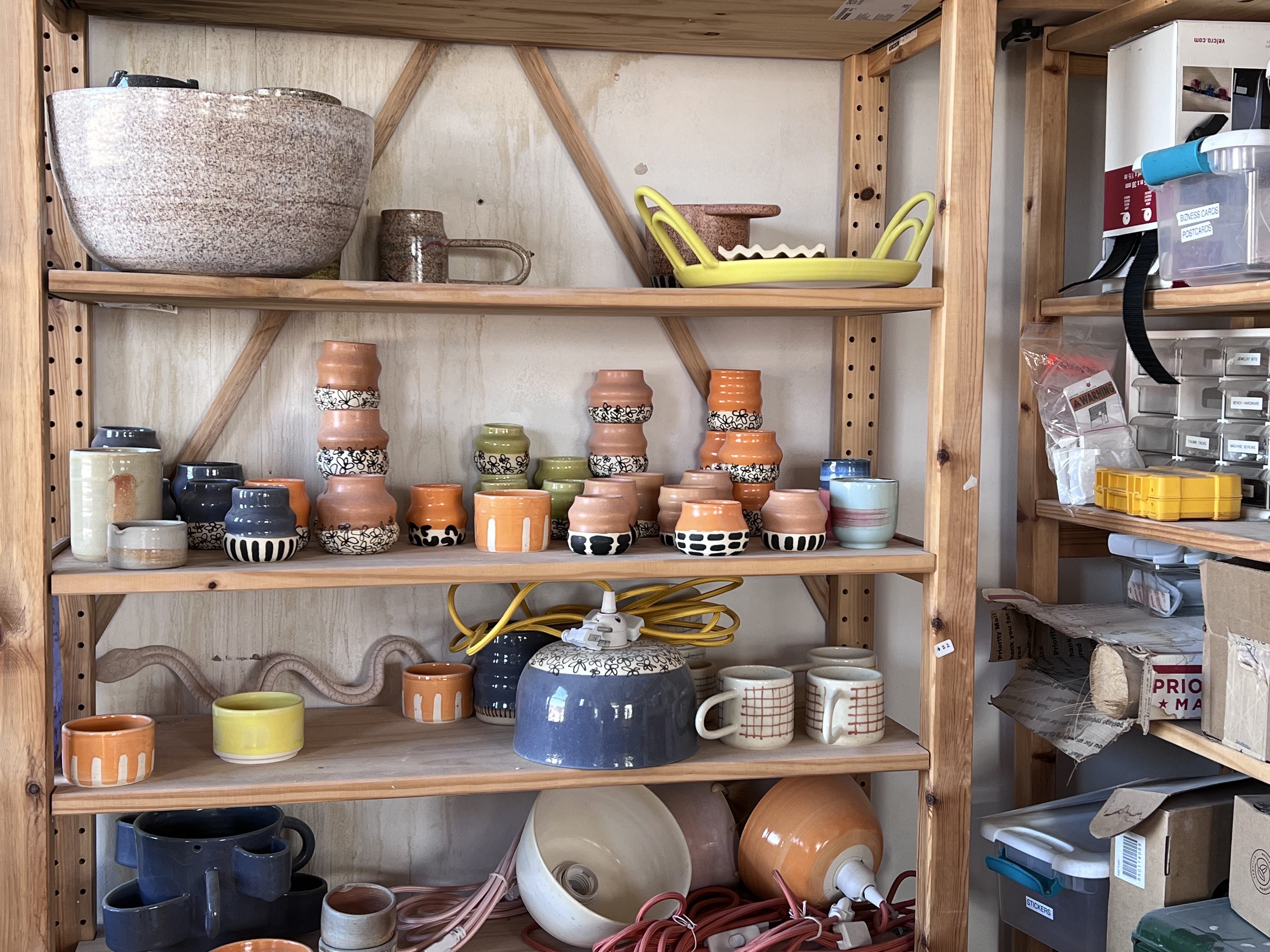 Speaking of the philosophy behind, and the name of, her studio space, Welch says, “Anyhow's philosophy is deeply rooted in my own struggles maintaining a creative practice. Starting is the hardest part. If we can cultivate a culture that encourages experimentation, and divorces a piece of bad or good work from the artist's personhood, beginning is much easier. I was having a particularly tough day in the studio and I came across a Lisa Congdon print with the text ‘Begin Anyhow.’ It was so earnest and simple and really resonated with me. I grabbed a piece of paper, wrote the words down and hung it above my wheel and got to work.”