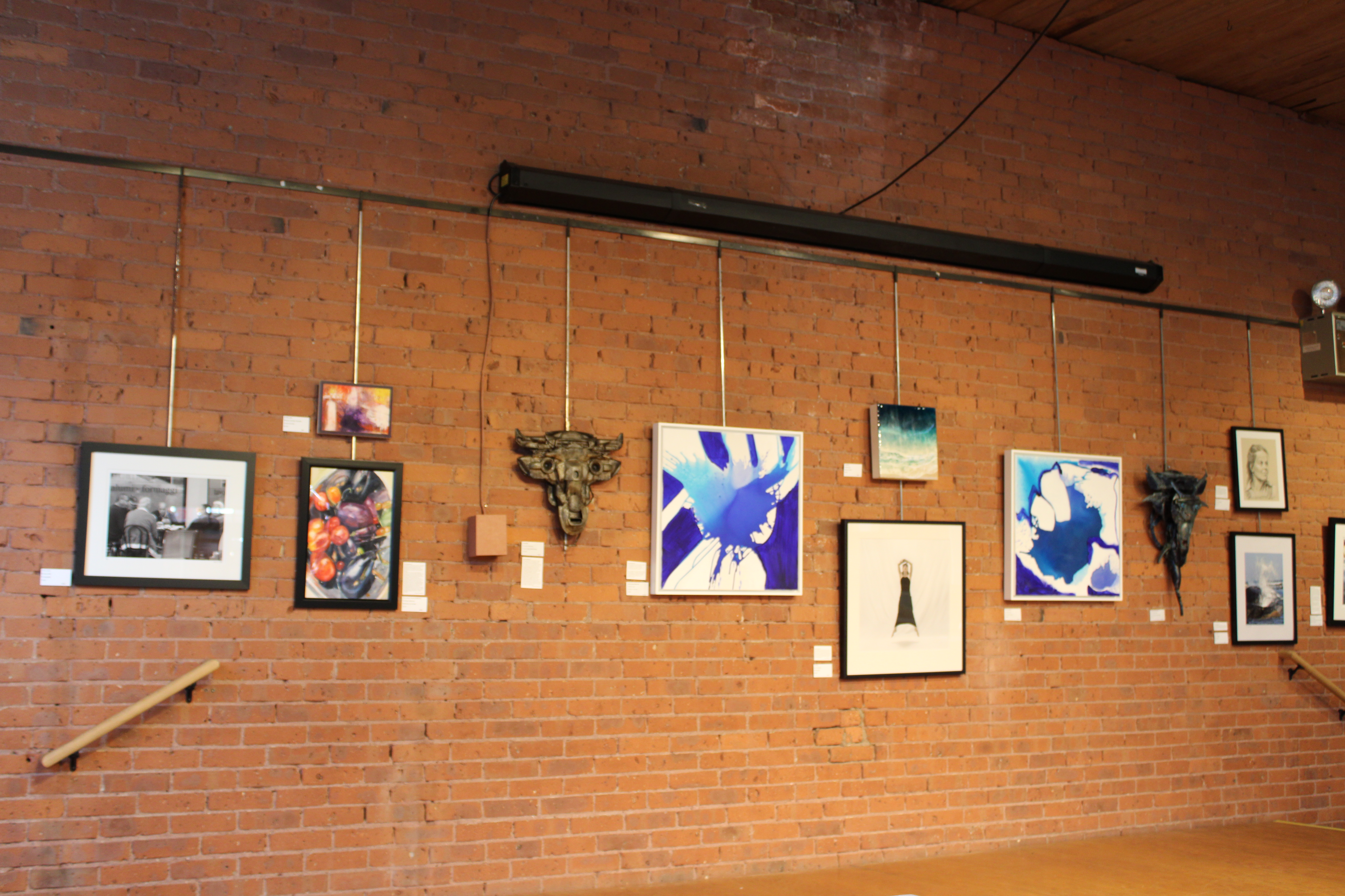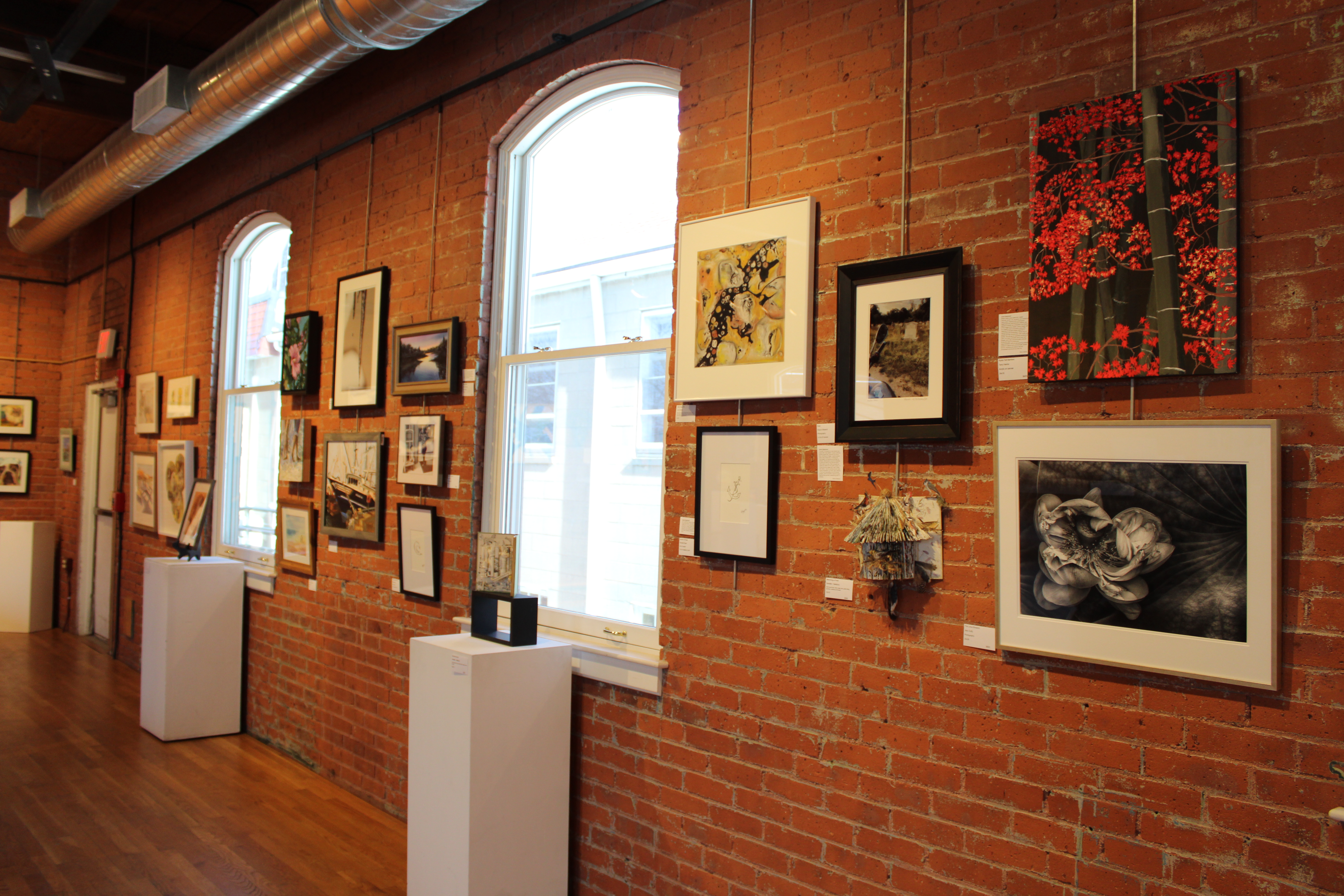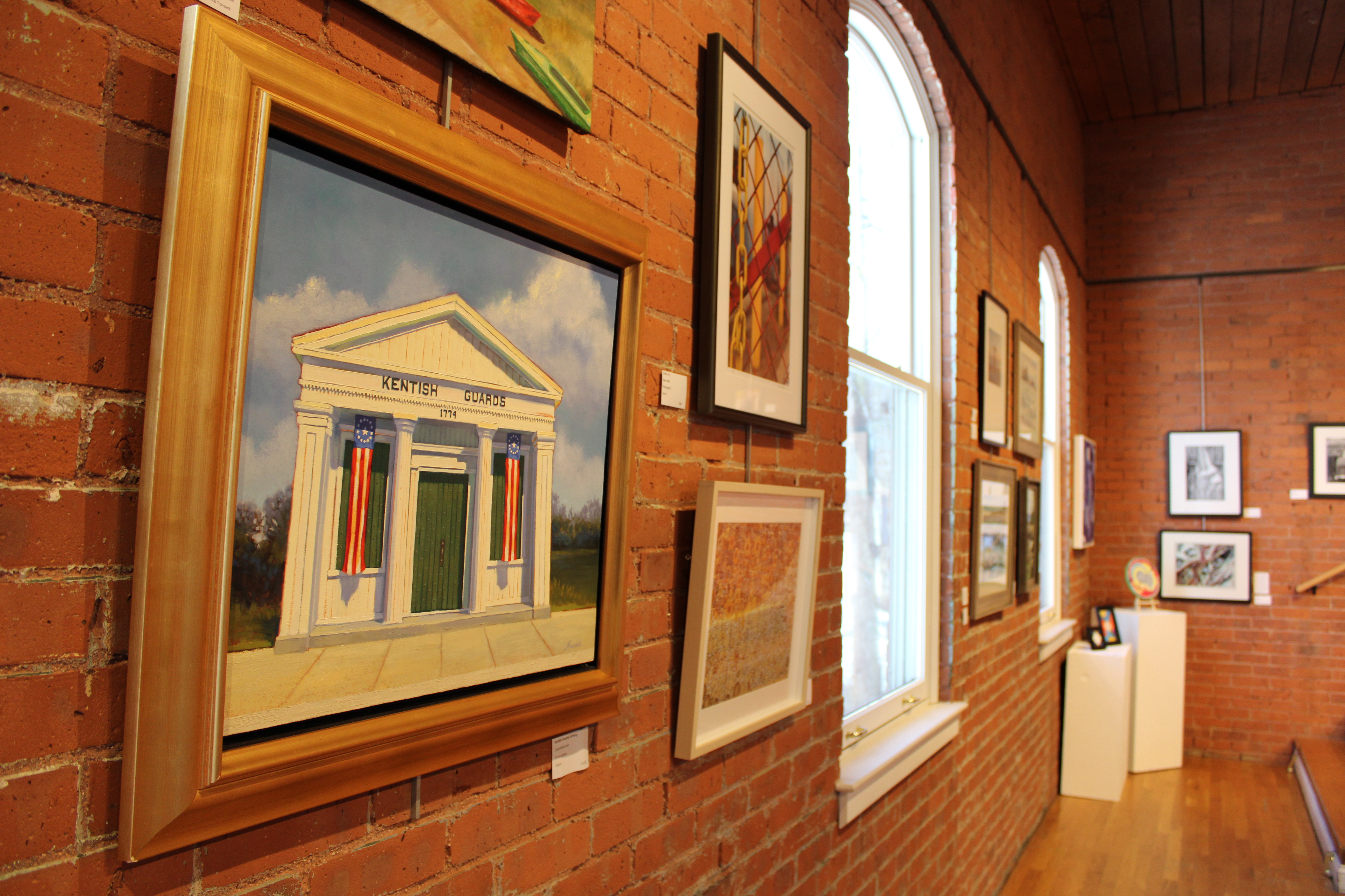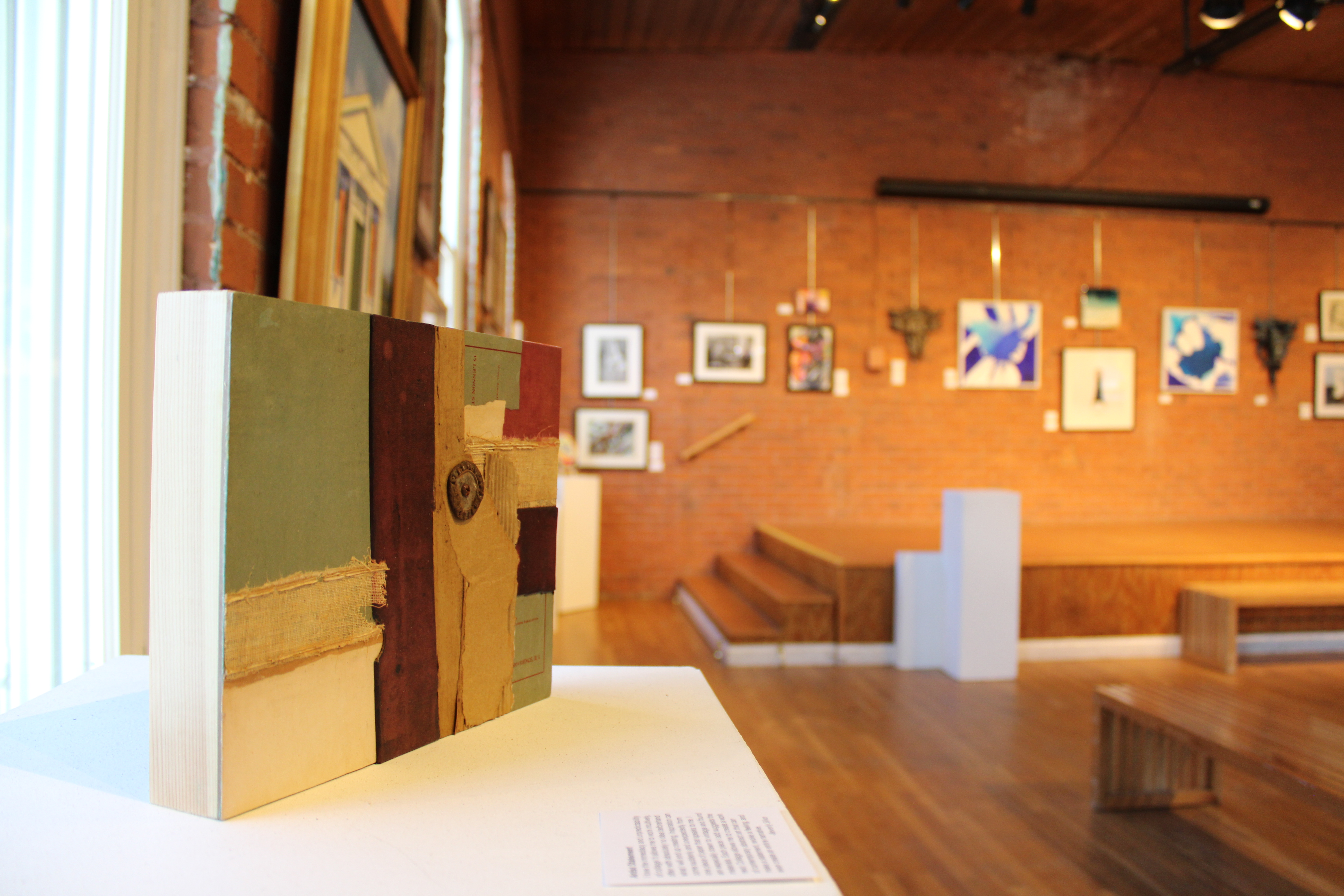 The exhibition boasts over seventy-five artworks by fifty-two artists, making it one of WCFA’s most popular shows. Artworks in a range of media, from paintings and photographs to sculptural assemblages and collages, are on view throughout the brick-walled gallery of the WCFA. Showing off the work of active WCFA member artists, the exhibition details some of the topics, themes, and styles that currently hold the interest of Rhode Island artists.