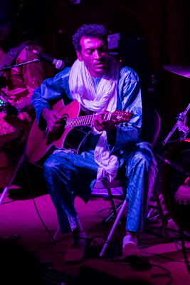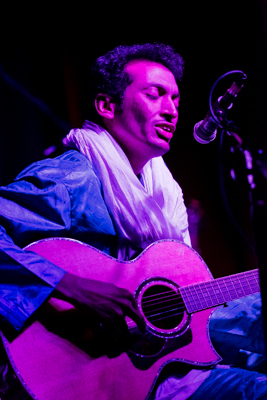 Bombino is a charismatic figure in his desert robes, connecting cultures through music. His band tours the country frequently appearing in festivals and solo shows. The sell-out crowd Friday night was a testament to his growing talent.