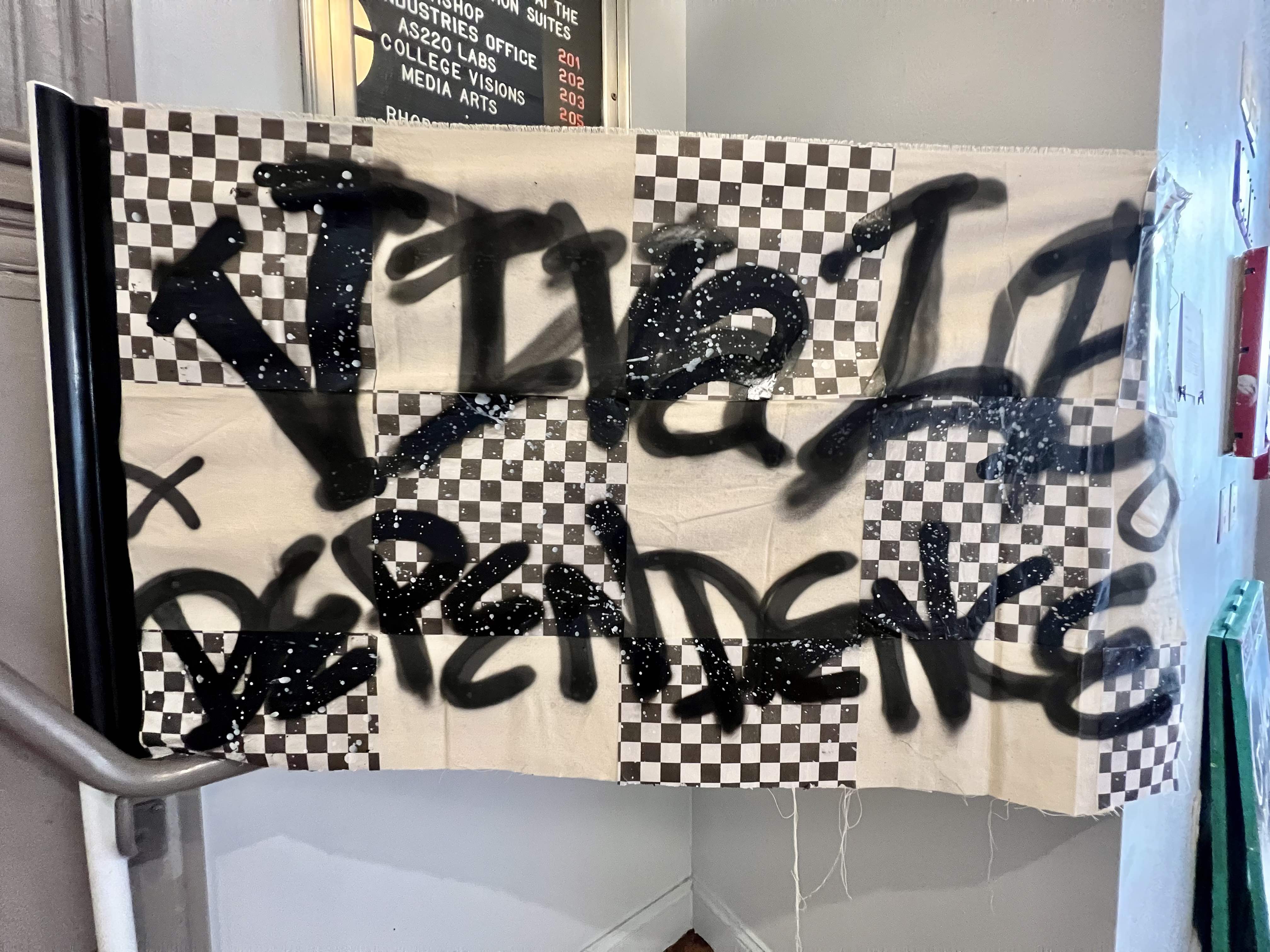 Providence art non-profit AS220 is not just the site of galleries and performances spaces, but also houses numerous artists in live-work studios in the heart of downtown. One of AS220’s residents is the enthusiastic young artist Donny Teiko Calhoun. Working in a variety of modes, from painting and collage to installation and performance, Teiko is shaping his own distinct creative path. His artwork is currently on view in a summer exhibition in Providence and his energetic practice promises many more shows in the future.