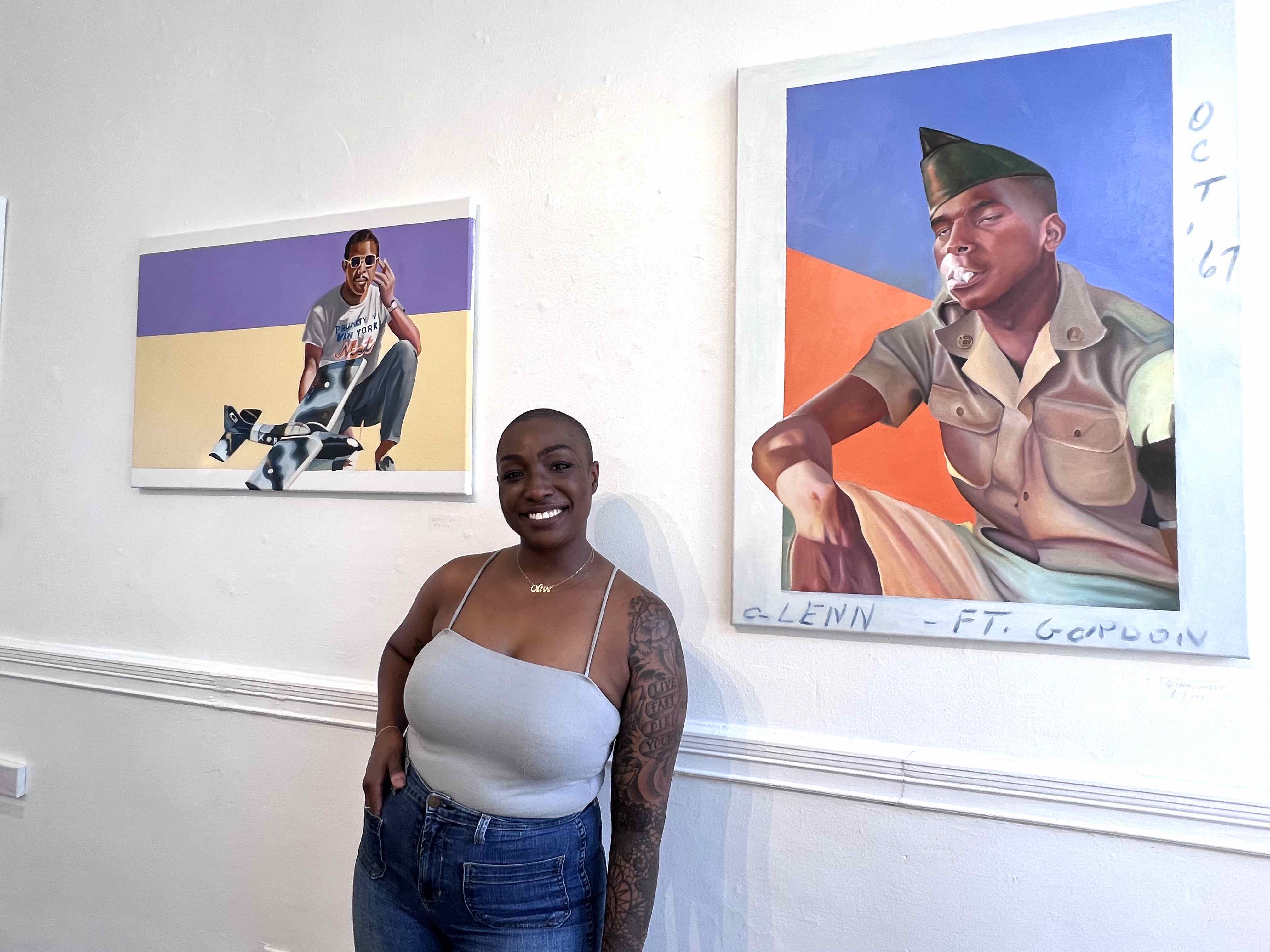 Asked about the genesis of her artist name Olive the Giant, Bryan says, “The name was actually a mash up between a nickname and an overall mood. I obviously love olives - the actual fruit, and I named my first Jeep Olive. I fully committed with a vanity plate. The Giant is a play on that age old, “I thought you’d be taller in person” but also a manifestation of being large in presence and in spirit.” A Rhode Islander and a RIC alumnus, Olive is primarily a painter but has also worked on public art and participated in the Black Lives Matter mural collaboration for Kennedy Plaza.