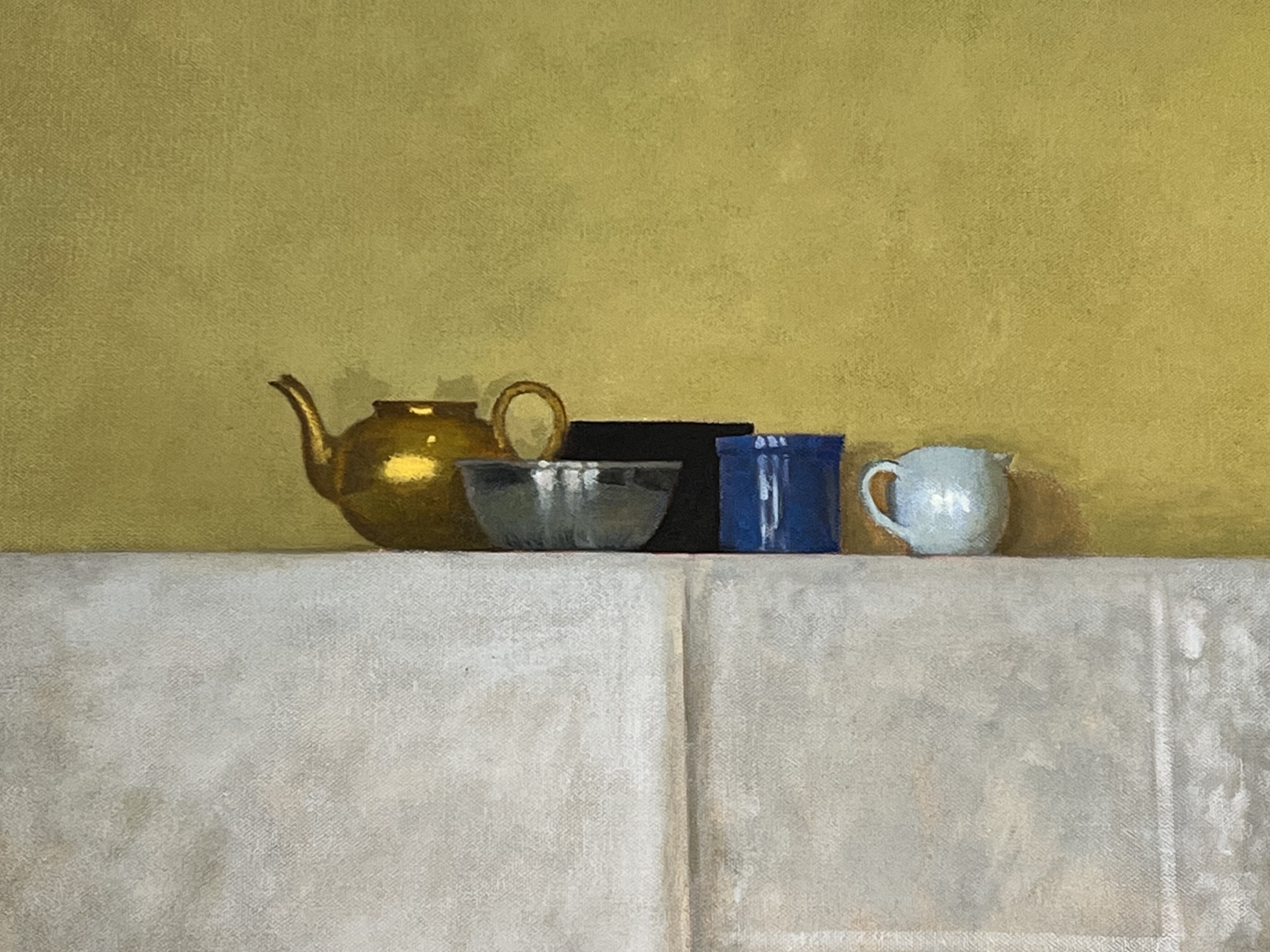 Terry is an artist crafting quiet images that focus primarily on interiors and still life. Often, these take the form of a table laid out with simple and utilitarian objects like a teapot or clock. He relishes in the subtleties of color, in the precision of composition, in creating structured views into imagined spaces.