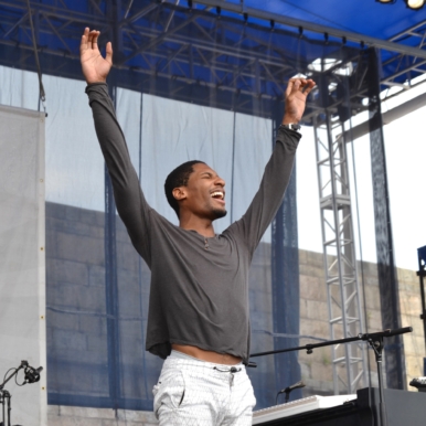 Jon Batiste and his band Stay Human will celebrate a festival first next weekend when they become the first band to play at both Newport Folk and Newport Jazz in the same year. They made a big splash with the Folk crowd with an eclectic set including covers of Blackbird and St. James Infirmary. Look for them on The Late Show with Steven Colbert this Fall. (photo: Ken Abrams)