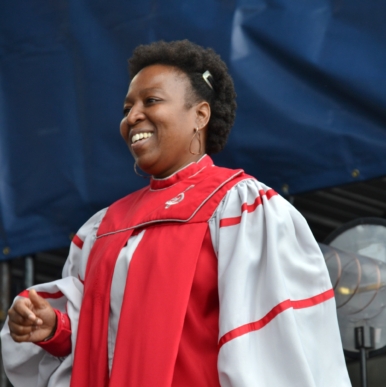 Sunday began with a stirring set from the Berklee College Gospel and Roots Choir led by Nedelka Prescod (pictured). The Choir performed several traditional Gospel standards including “Brighter Day” and “Ain’t Gonna Let Nobody Turn Me Around.” They are a regular act at Newport and always get Sunday off to a great start. (photo: Ken Abrams)