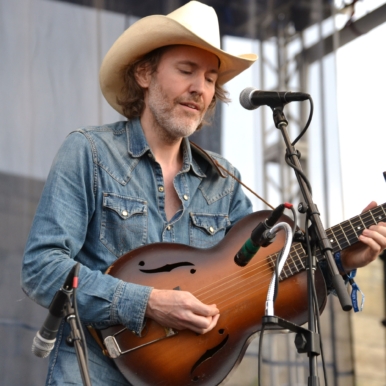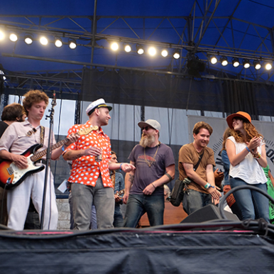 Festival favorites Dawes joined Welch and Rawlings bringing a little electricity and kicking the tempo up a notch or two. They rocked and rolled their way through “Maggie’s Farm,” the song Dylan opened with in ’65. More guests joined the fun including Deer Tick’s John McCauley (pictured) and Ian O’Neil. McCauley’s raucous vocals and harmonica on “Outlaw Blues” was a set highlight. (photo: Ken Abrams)