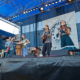 Rhode Island band Haunt the House opened the festival to an overflowing crowd at the Harbor Stage. HTH leader Will Houllihan (pictured) urged those assembled to "Help us sing, we're nervous up here!" They were a big hit, and later played a set on the Children's Stage. Keep an eye on this band.