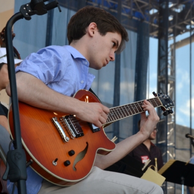 The Berklee Concert Jazz Orchestra opened the Festival on the Fort Stage. Under the direction of Greg Hopkins, they are one of the best college bands in the nation. Guitarist Mitch Selib of Medfield, MA was featured on several tunes. (Photo: Ken Abrams)