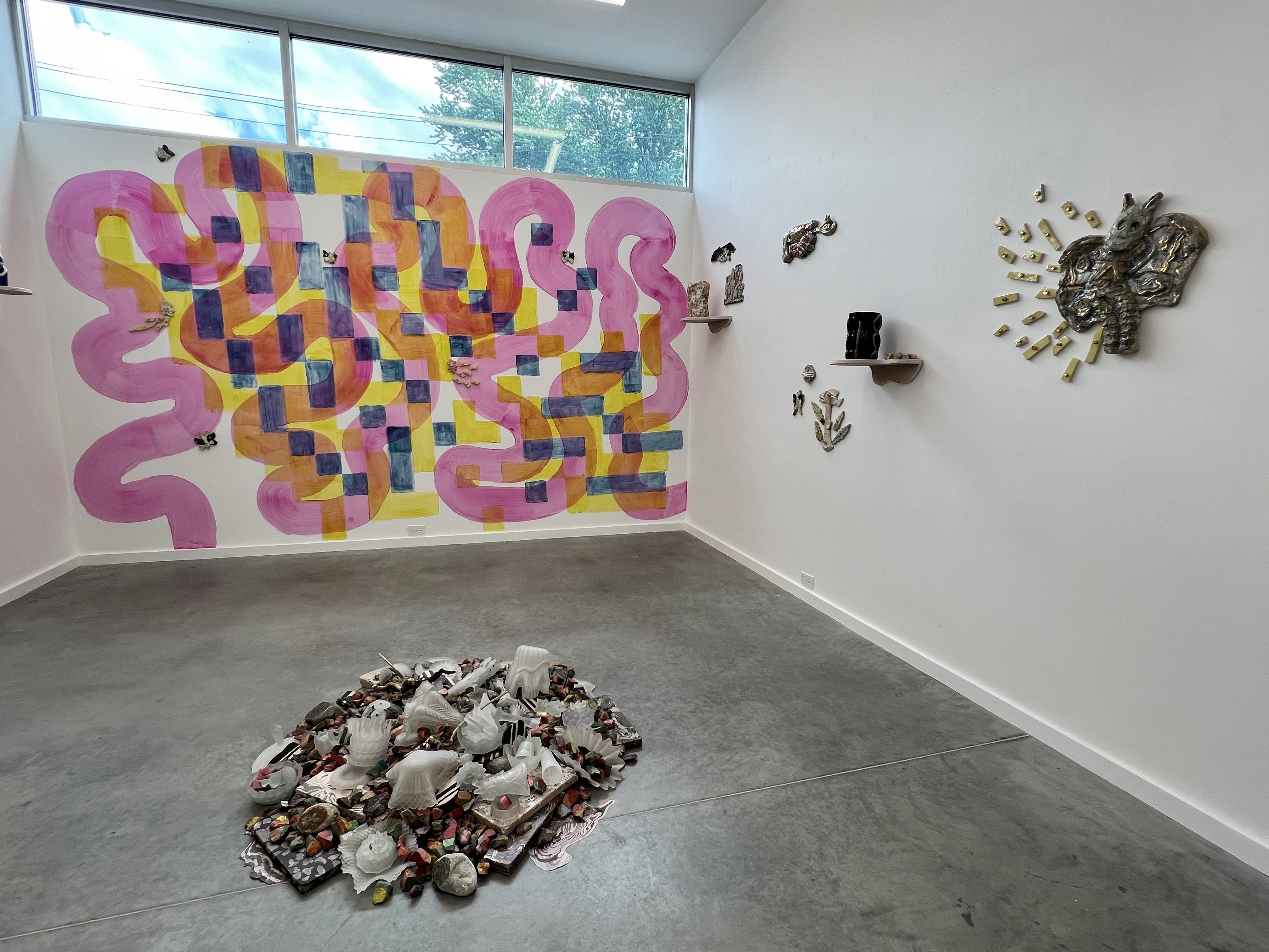 Some might be tempted to pigeonhole makers working with clay, assuming they make vessels or decorative objects. For Providence artist Judd Schiffman, ceramics often looks more like a painting, wall hanging, installation, or relief sculpture. It also serves as a jumping off point for collaboration and experimentation. In an impressive new show at Overlap Gallery in Newport, Schiffman is working in unison with fellow artists Athena Witscher and Eamon Brown to create an immersive and multi-part art experience with clay at its foundation.