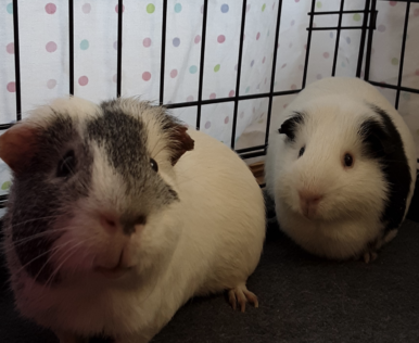 Meet Calvin and Hobbes! These boys are both around 4 years old and looking for a home together. They're curious and social, and get pretty chatty when they know treats are around! They'd make a great addition to any family.