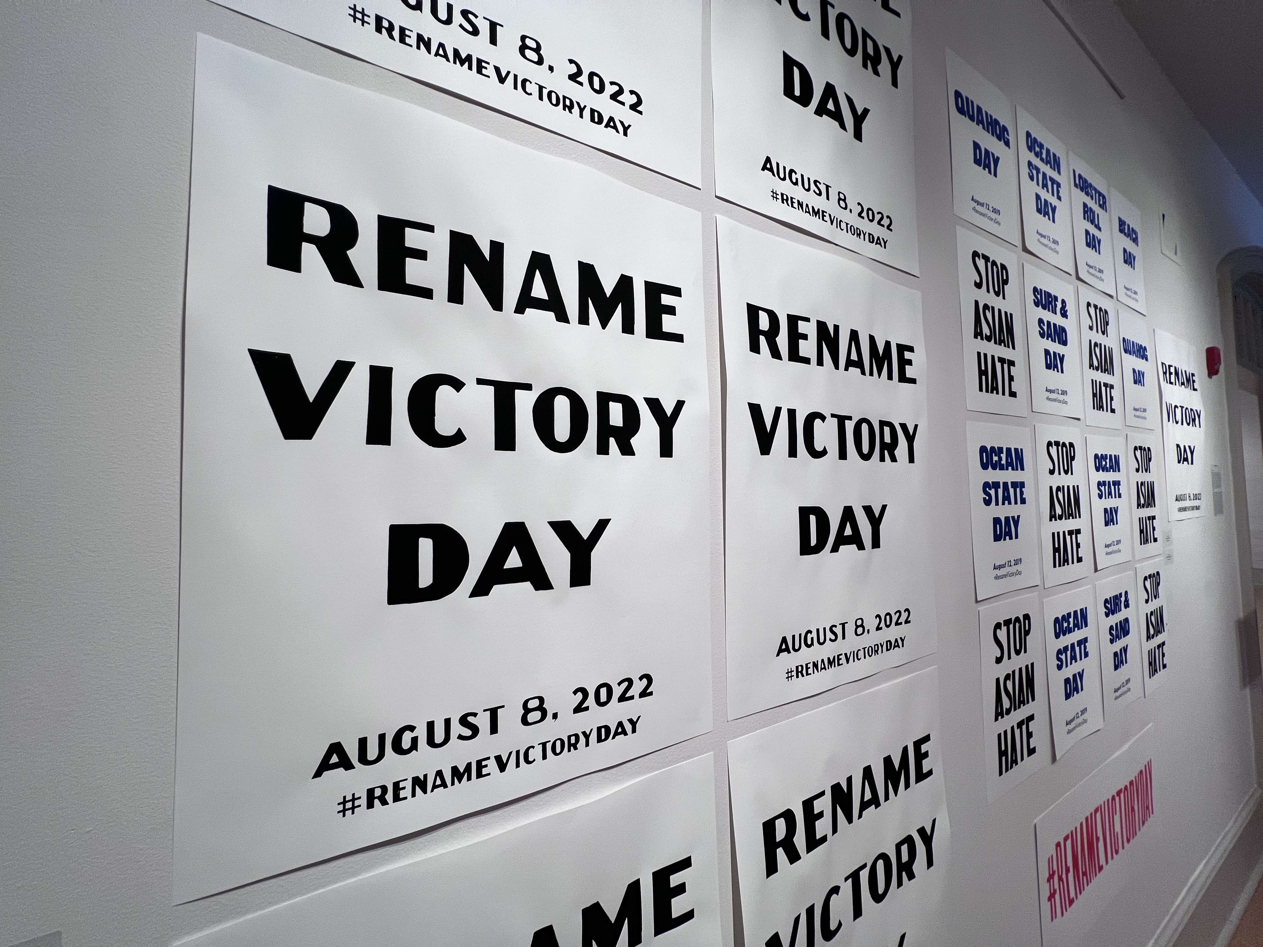 Upon entering the museum at 10 Wardell Street in Bristol, viewers will find the walls of the institution’s lobby covered in posters by Providence printmaker Lois Harada which make the case for the changing of the name of Victory Day in Rhode Island. Harada has long used her printmaking to advocate for a reconsideration of this holiday, but in the grouping of work presented at BAM, viewers get to see a great number of Harada’s prints all in one installation. With Victory Day on August 8, the timing of this show is apt.