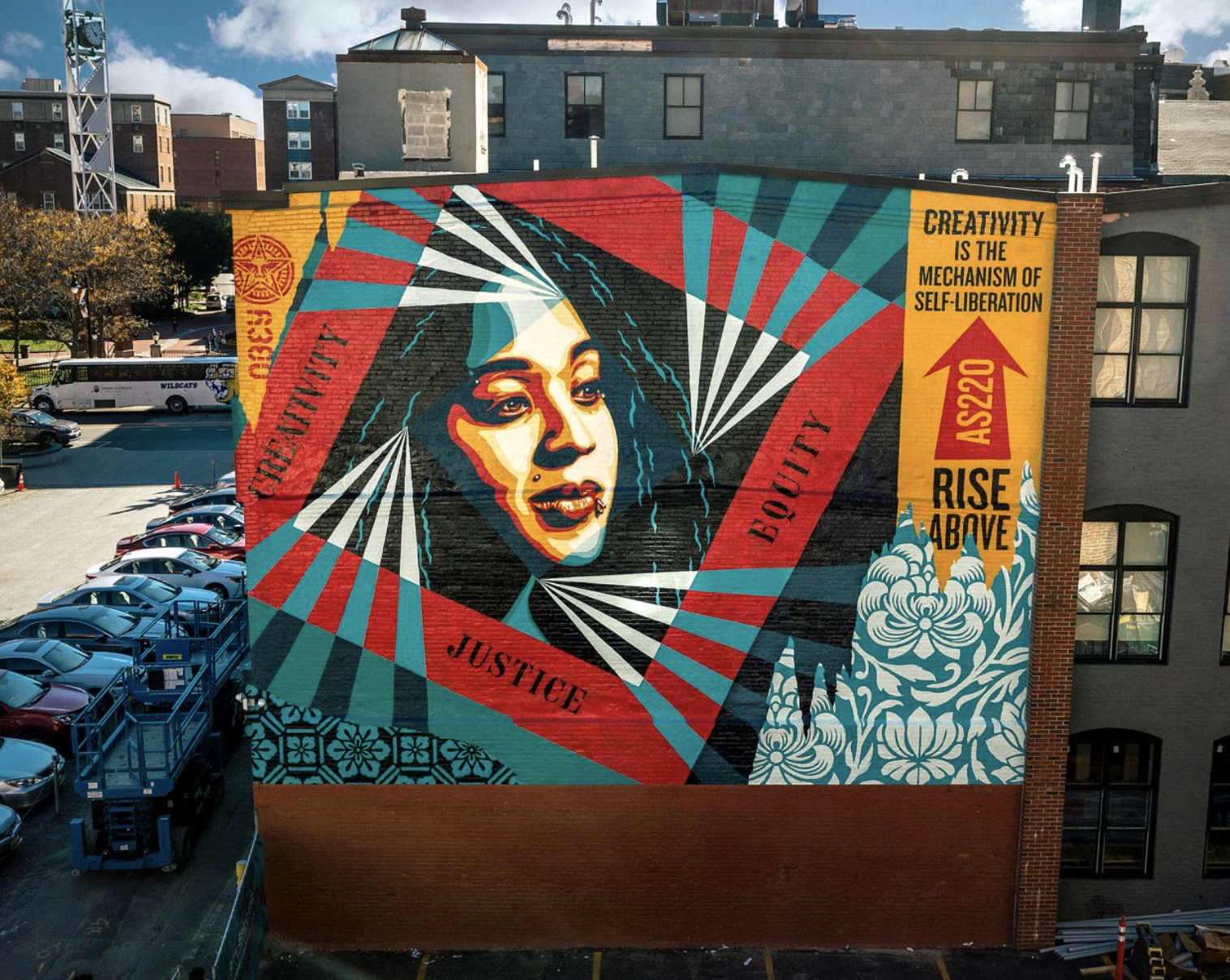 GET THE LATEST BREAKING NEWS HERE -- SIGN UP FOR GOLOCAL FREE DAILY EBLAST"I just completed my 100th mural in Providence, RI. Special thanks to Shauna, Ruth, Neal, Umberto, Paris, David and the rest of the AS220 team, Cornish Associates, Buff, and Nathaniel Chace, my mural team: Dan, Nic, and Rob, and Anjel Newmann for being the inspiration and model of this mural,” said Fairey.