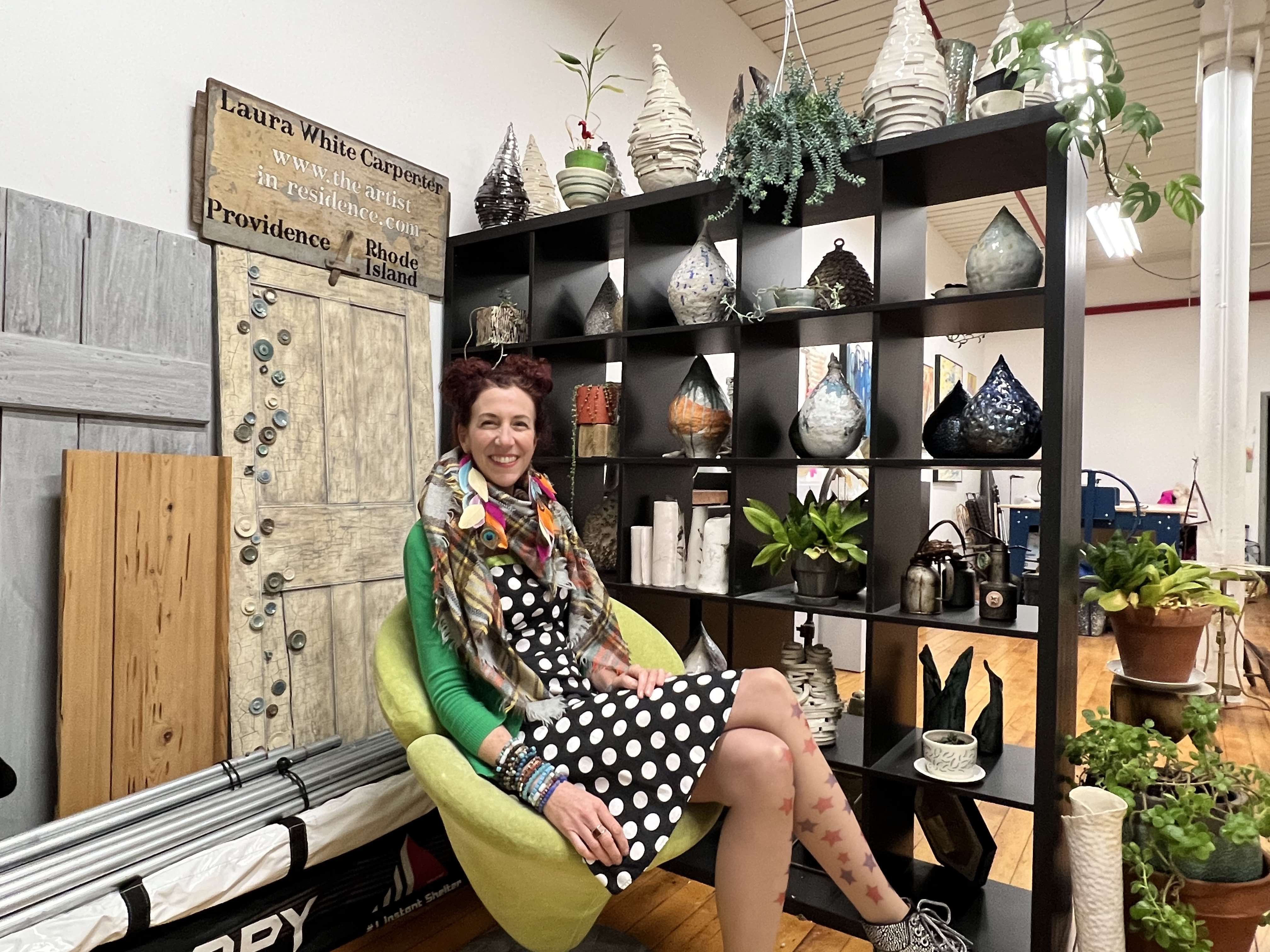 Few creatives on the Rhode Island scene can match the ebullient and colorful personality of local ceramist, painter, and mixed media artist Laura White Carpenter. From her Pawtucket studio, Carpenter creates forms that are full of texture, color, and meditative power. She is an artist to know and an individual who is contributing her own remarkable vision to the local art community.