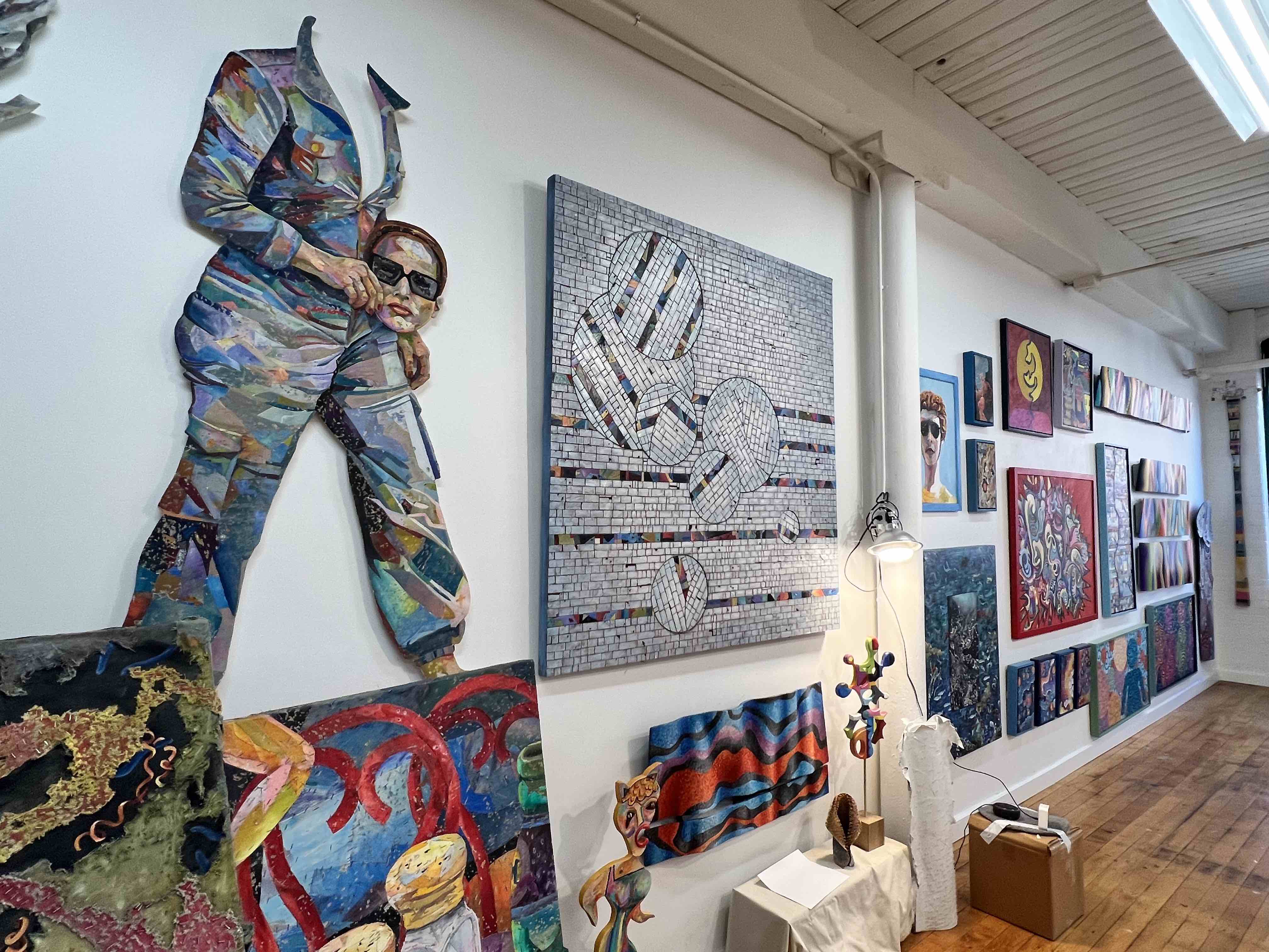 Some artists are extraordinarily productive, with minds always full of ideas and intentions. Sharon Cutts is one such individual, and from her Pawtucket studio is constantly producing inventive works that meld the fields of painting, mixed media, collage, sculpture, and canvas mosaics. She is an artist with a vision whose studio is a center of enthusiastic, creative production.
