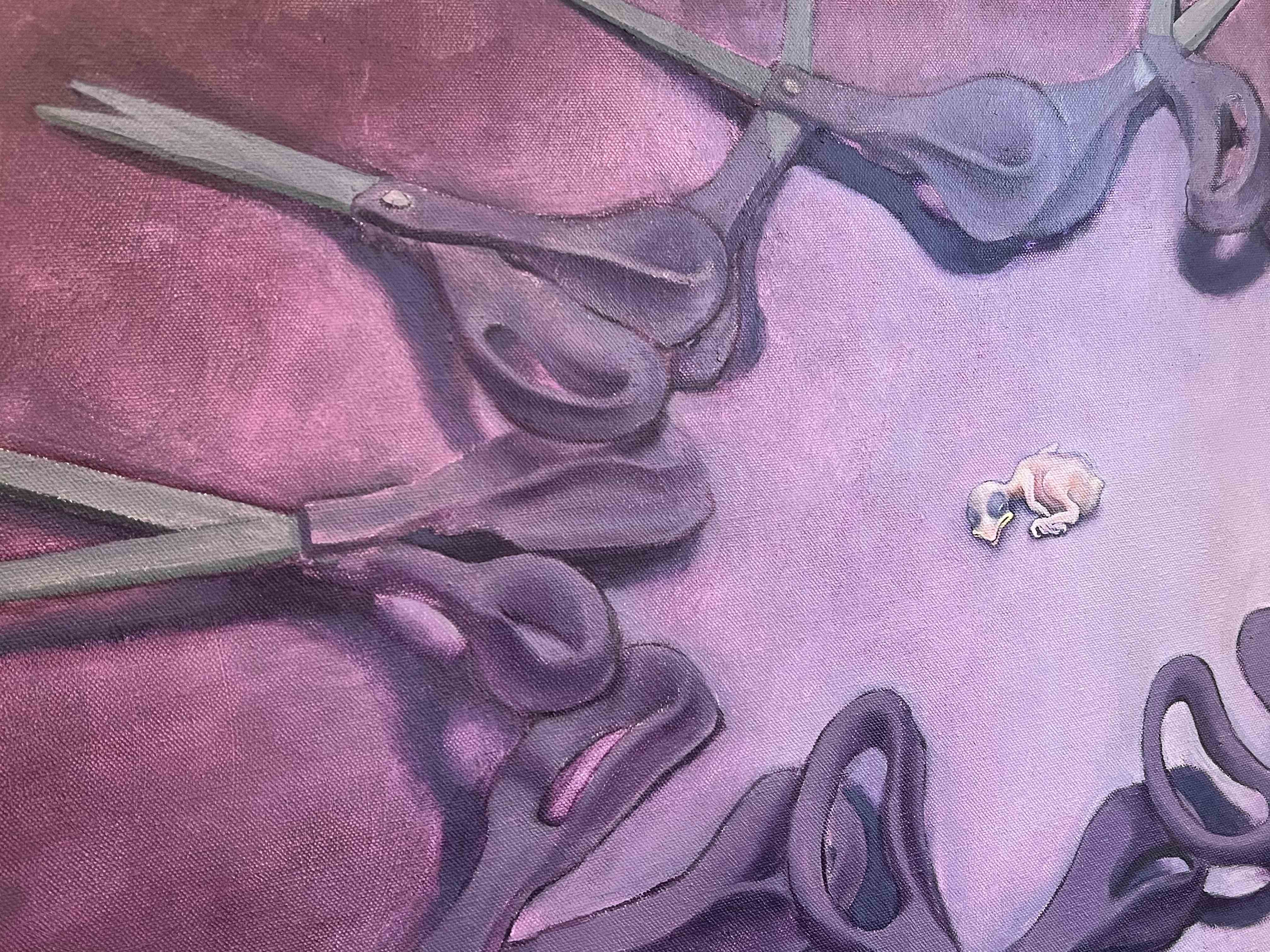 Napoli’s well-made paintings are rich in metaphor. Some of the elements that appear have broad resonance, while others are deeply connected to the artist’s own language and experience. Of his use of symbolism, the painter says, “I often depict objects which represent tension, restraint, or the threat of separation. Scissors indicate our ability to make change and the possibility of harm in misuse. Chains suggest being held back or bound. I hope that viewers find these feelings relevant to our cultural climate of separation, and remind us of our responsibility to use our tools and abilities in caring ways.”