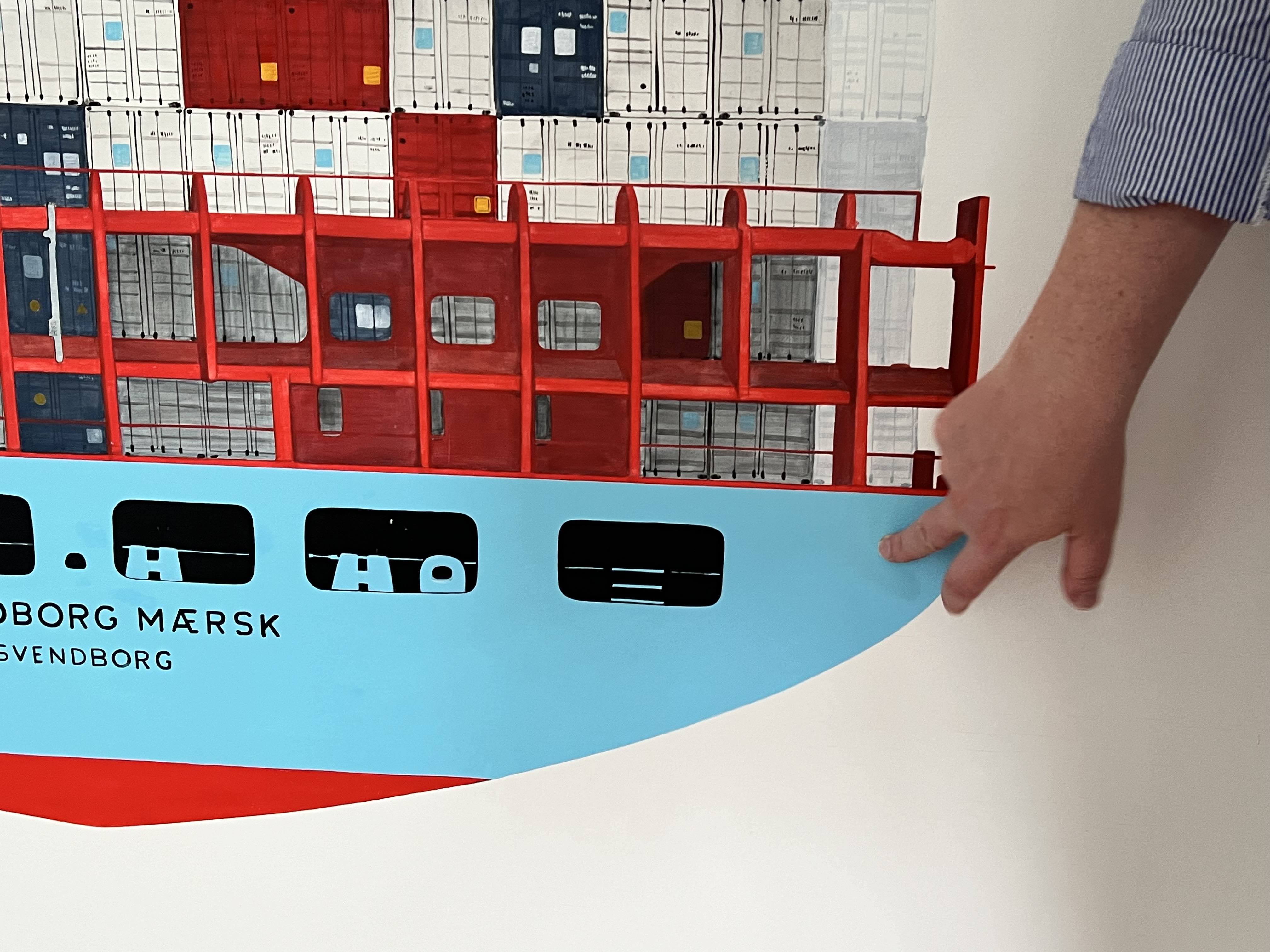 Considering the way living in Rhode Island has inspired her work, Duke says, “The varying uses of Narragansett Bay as a resource influences my work heavily, whether that be in shipping, defense, commercial fishing, or leisure.” The artist shares an anecdote about driving to Quonset during her time as a student at URI to take pictures and do firsthand research into the way the port functioned. She has completed additional pieces that explore the maritime shipping industry. Fastidious paintings of crumpled shipping containers atop enormous cargo ships tell the story of the dangers of the open sea.