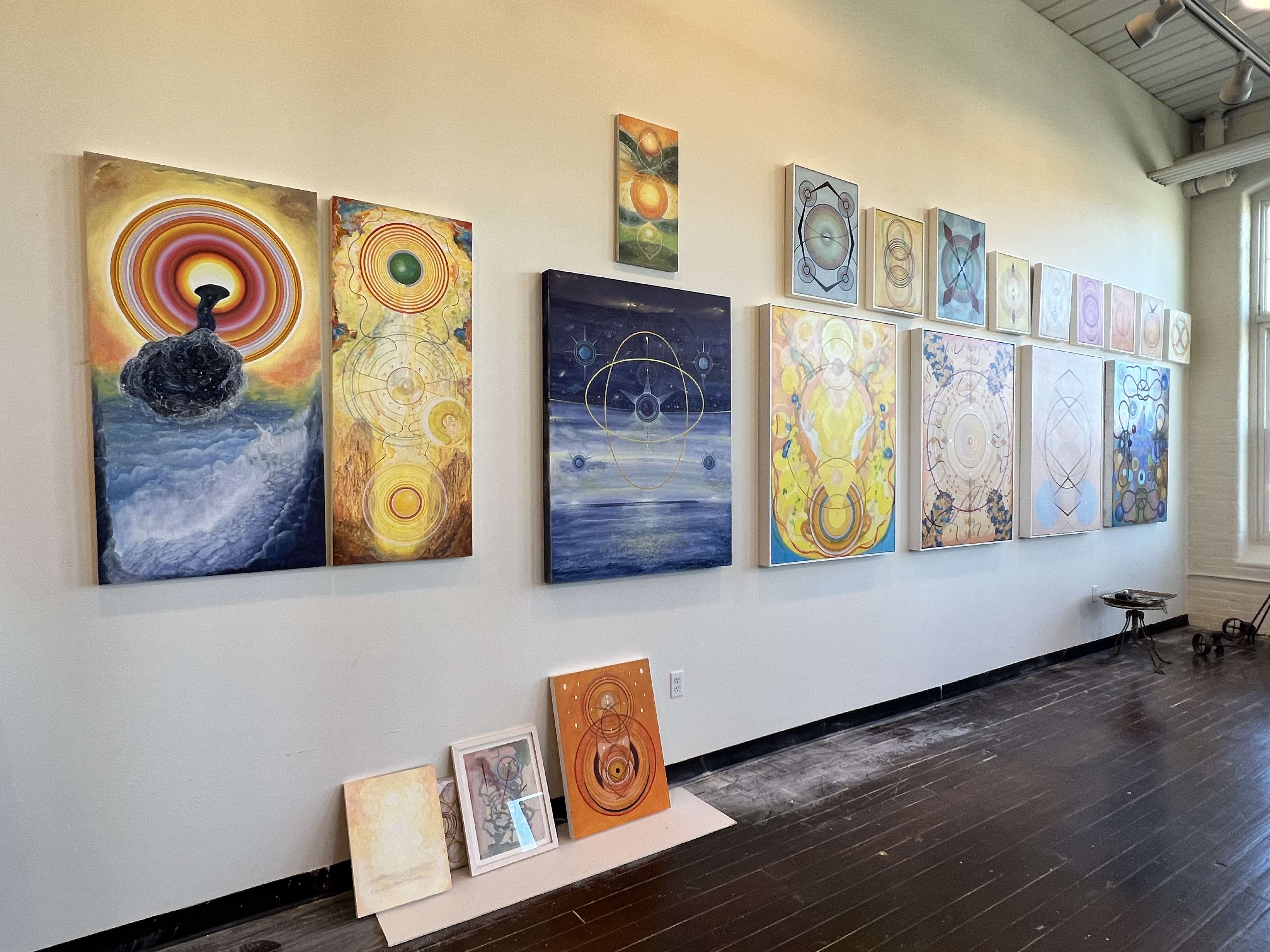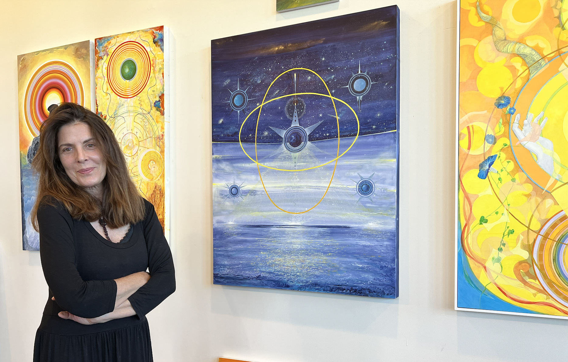 Ideas of the spiritual and the cosmic appear in many artists’ work, but multi-talented Rhode Island artist Tayo Heuser’s visual lexicon taps into this interest in a signature way. In recent paintings, Heuser leverages geometric forms and suggested spaces to probe her own interior life and give space to viewers to do the same. Later this fall, Heuser will exhibit alongside artist Jacqueline Ott at the Chazan Gallery at Wheeler School, giving viewers the chance to see her latest work.