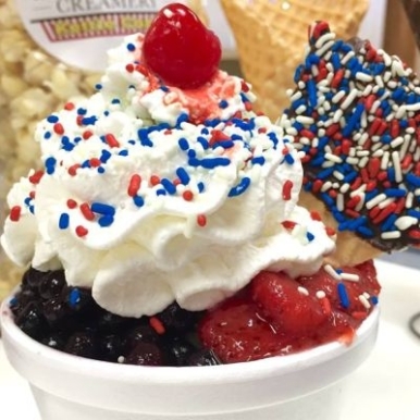 The Creamery serves over 65 flavors of ice cream, sherbet, and sorbet!