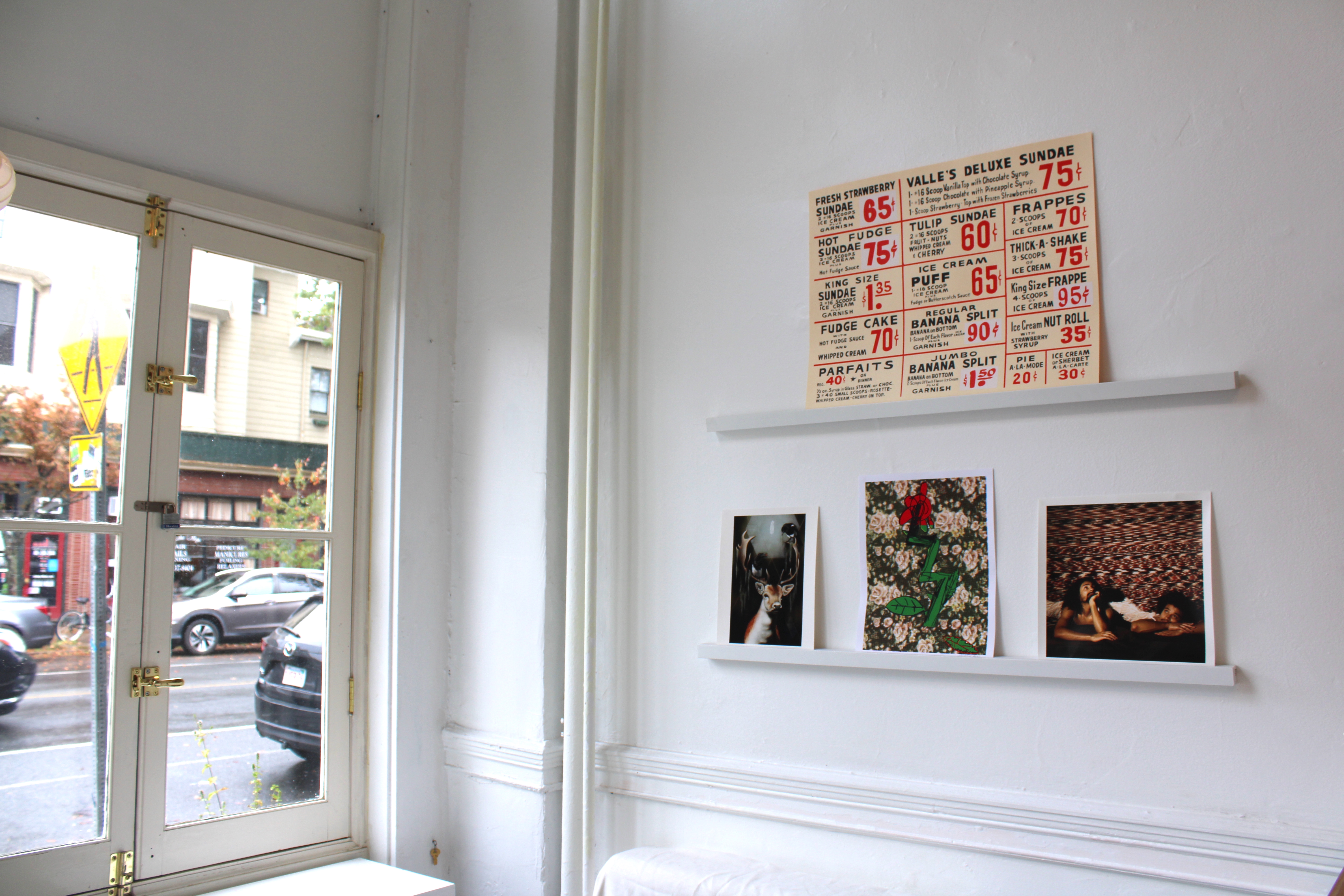 Without a doubt, there is much to see in the exhibition. Spread over the bright walls of the sunlit World’s Fair Gallery, some pieces hang from binder slips while others sit side by side on shelves. When visiting, one might linger on one image or build connections between several. In the show, color and form are juxtaposed with varying means of making images. Bold illustrations are paired with images that speak in quieter tones making for an exhibition of striking and delightful variety.
